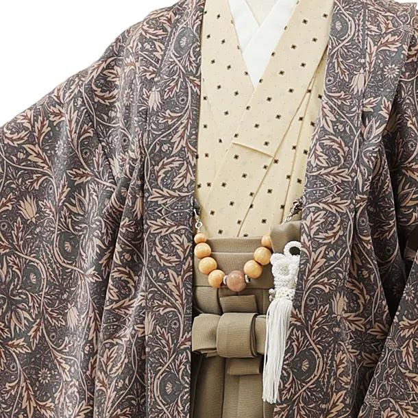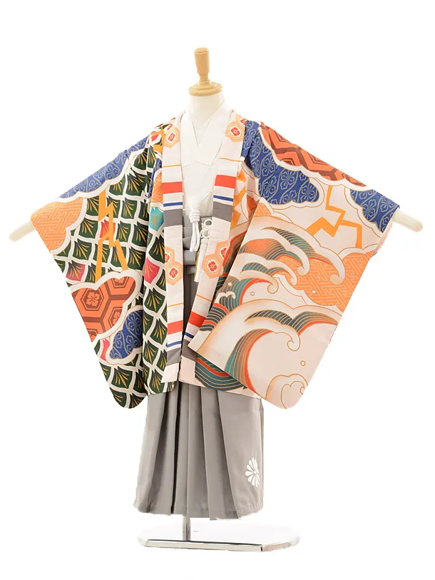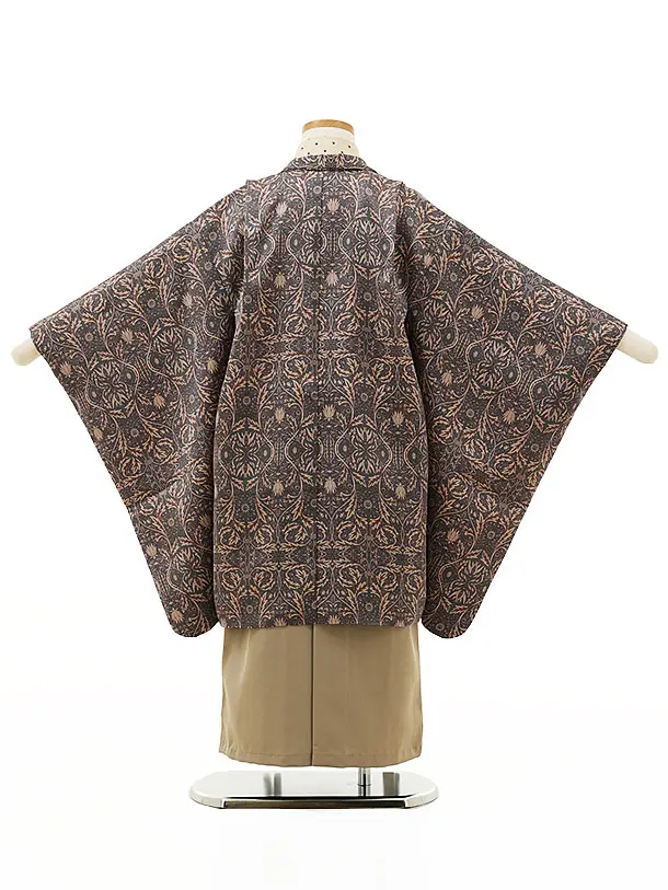 七五三レンタル(5歳男袴)X198グリーンパープルダマスク柄xベージュ袴
