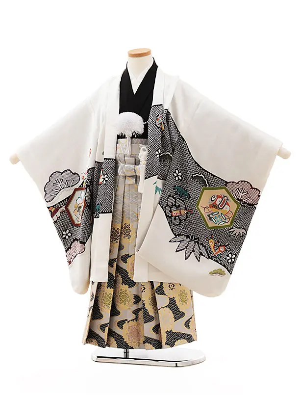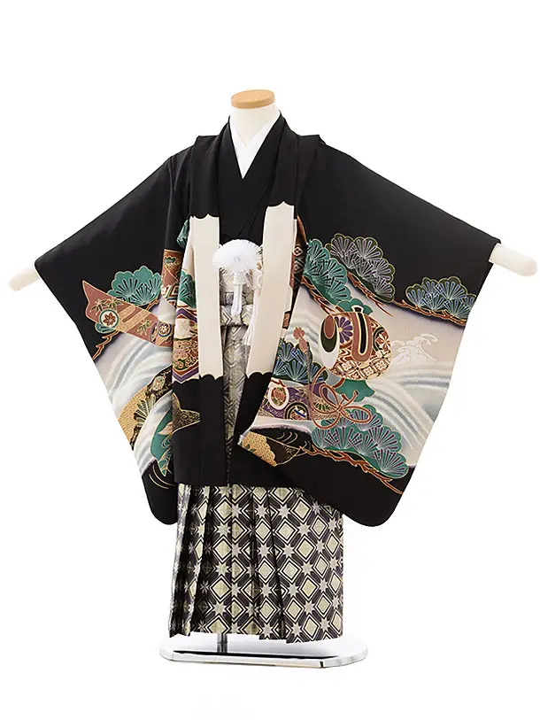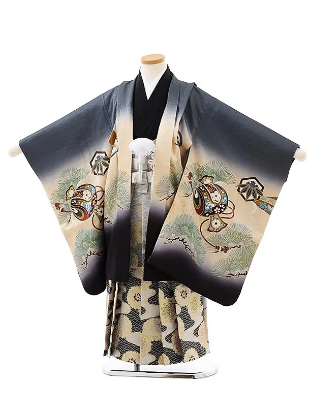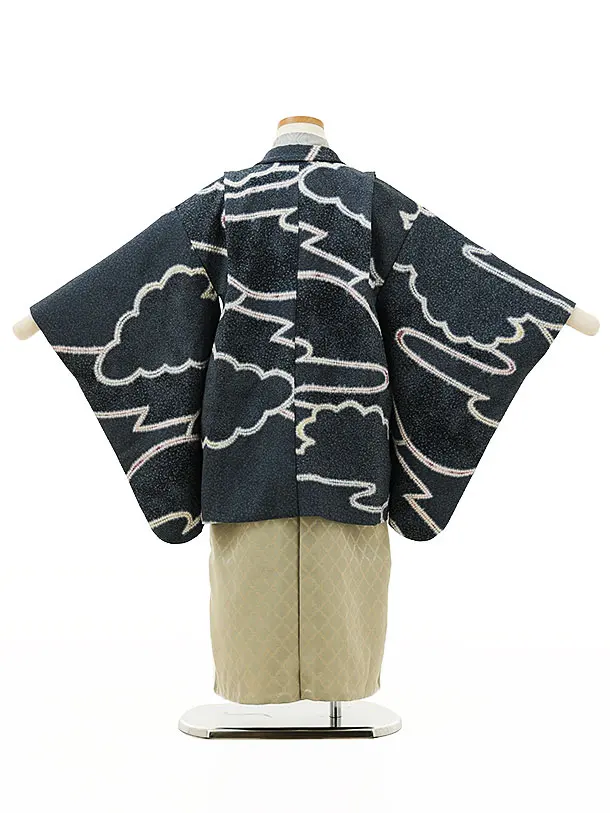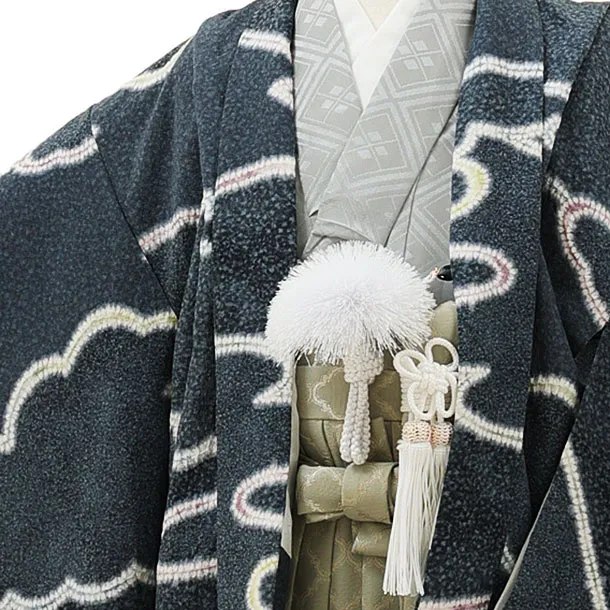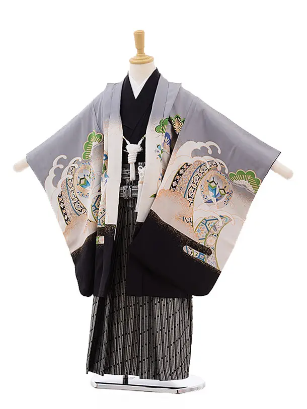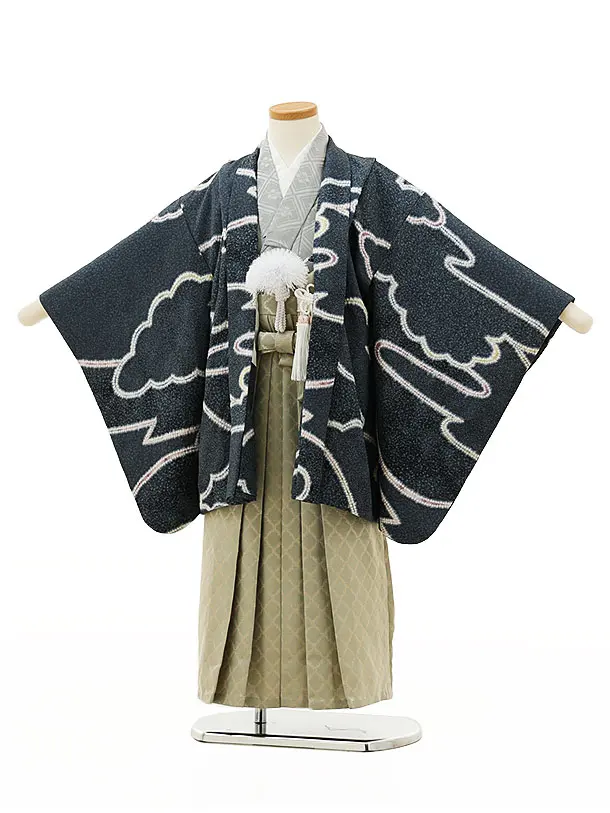 七五三(5歳男袴)X201【正絹】グレー雲取りxペールグリーン袴