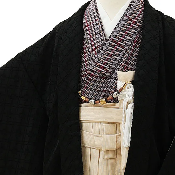 かんたん七五三レンタル(5歳男袴)X206黒xアイボリー袴