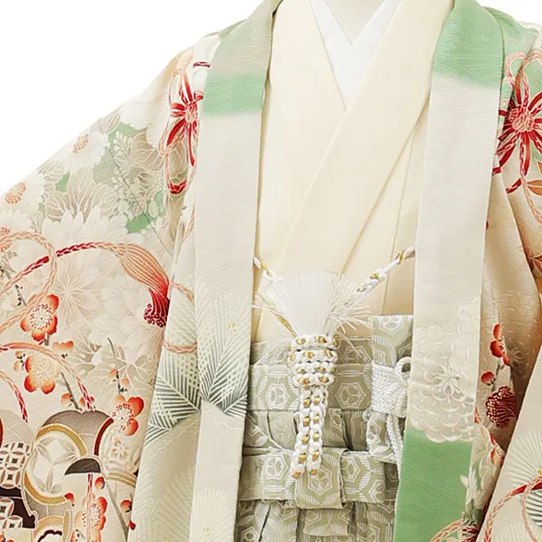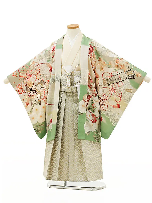 七五三レンタル(5歳男袴)X208華徒然ヒワ色鷹兜xベージュ袴
