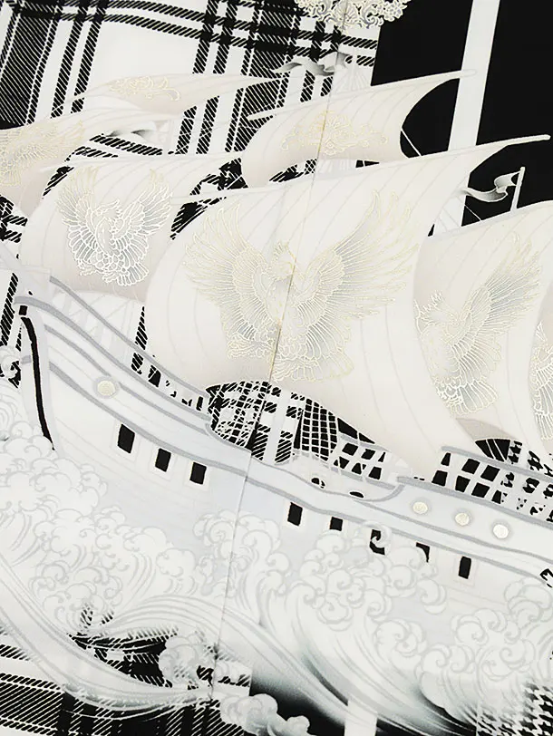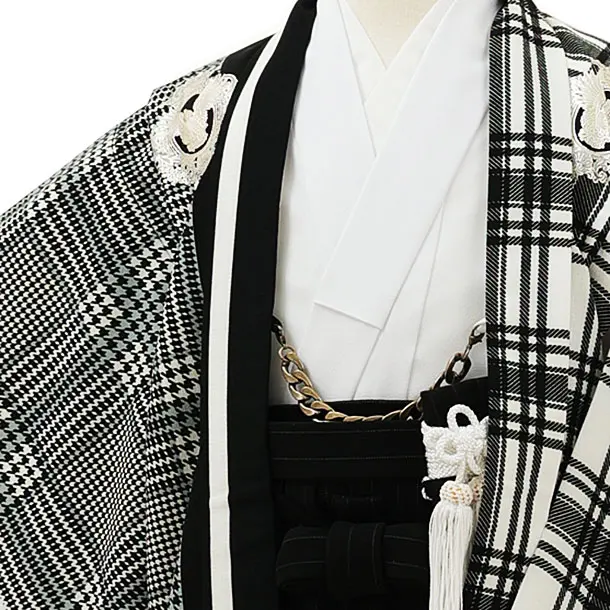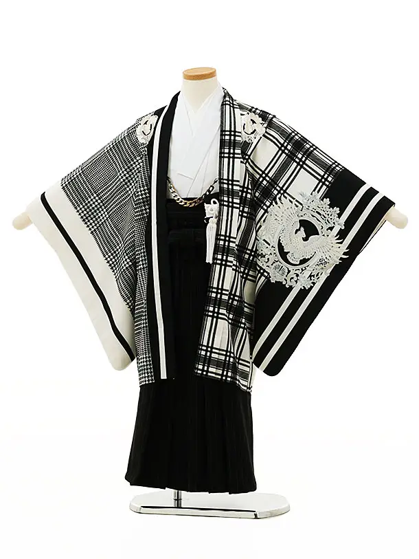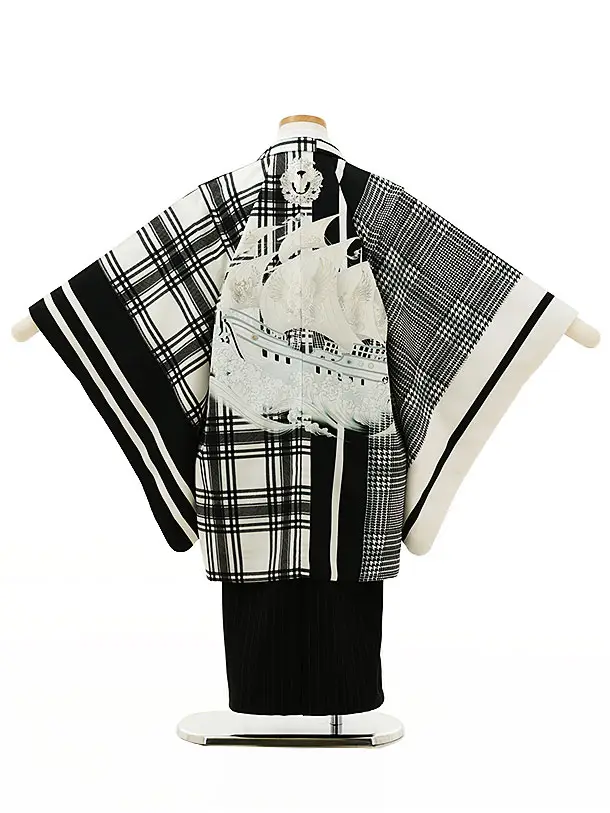 七五三レンタル(5歳男袴)X210シュセット白黒チェック帆舟x黒袴