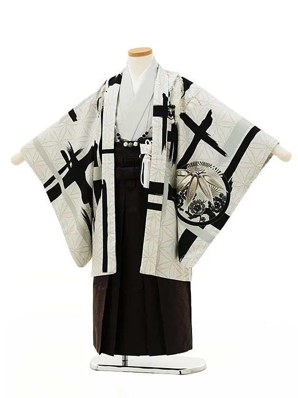 七五三レンタル(5歳男袴)X213JAPANSTYLE白梅白鷹xこげ茶袴