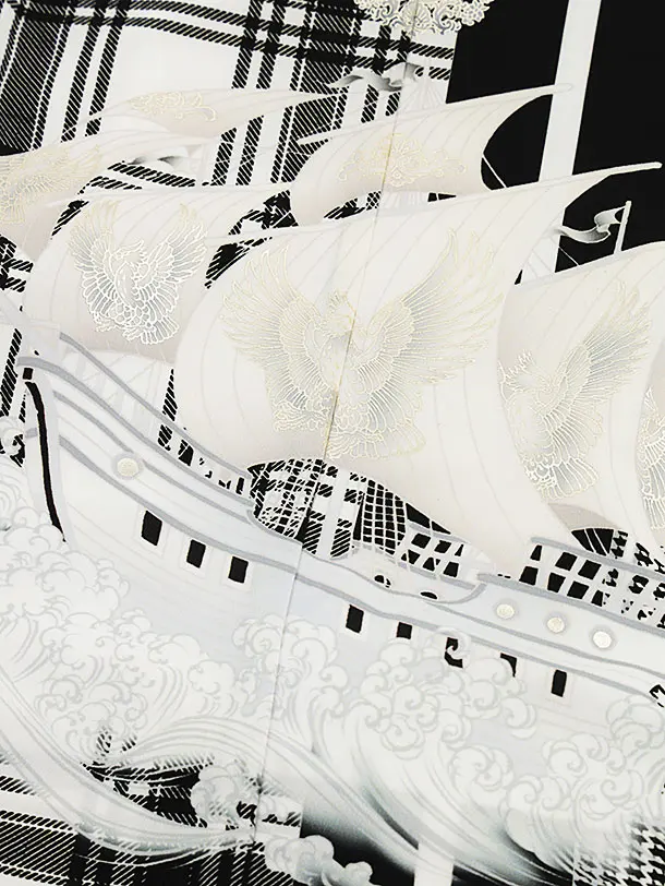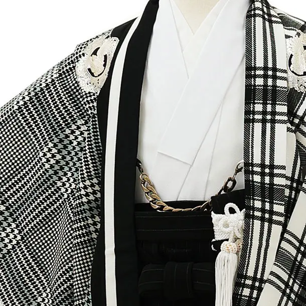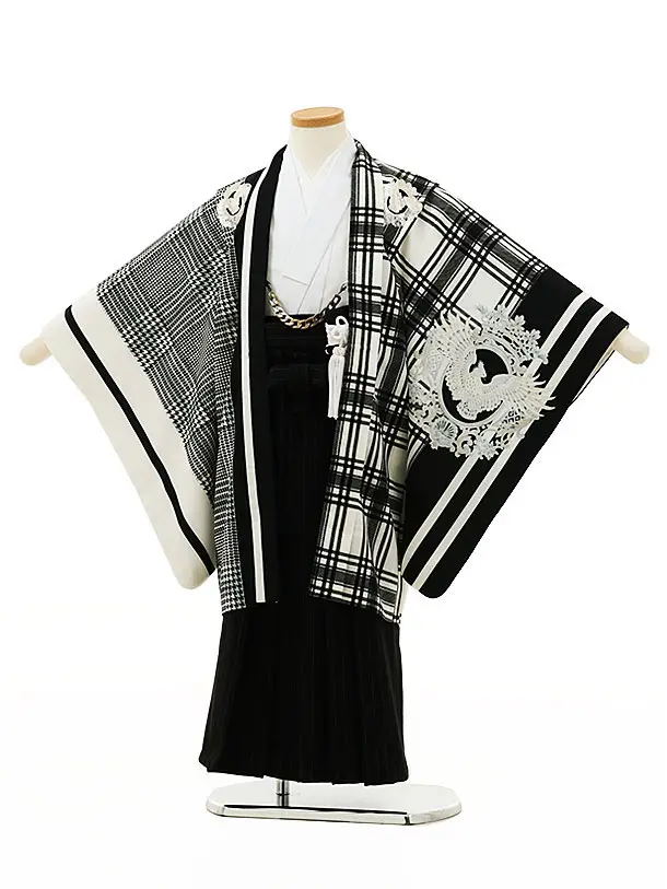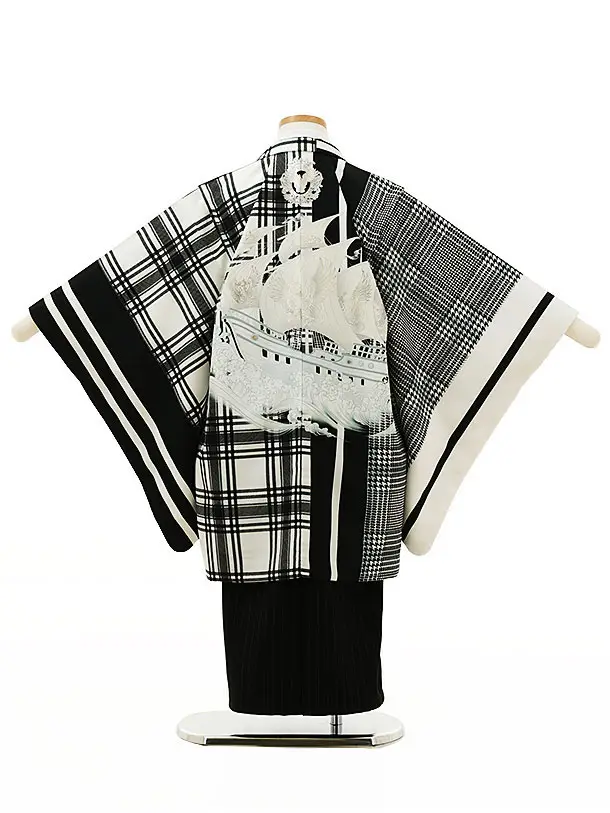 かんたん七五三レンタル(5歳男袴)X220シュセット 白地チェック帆舟x黒袴