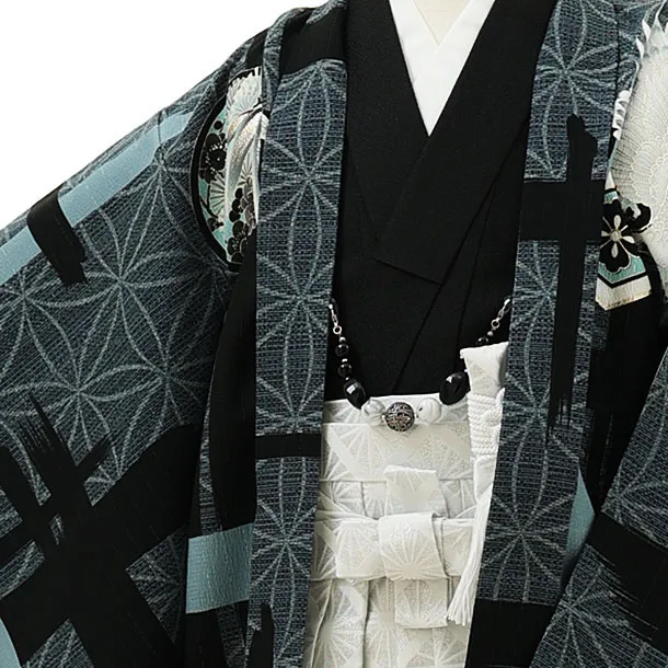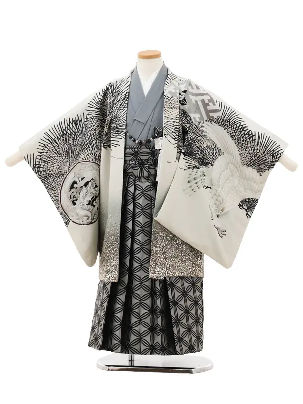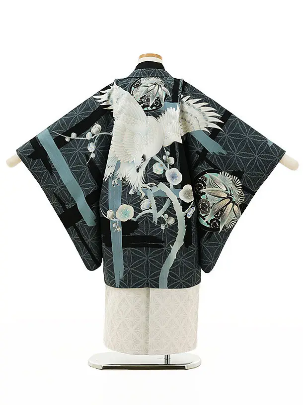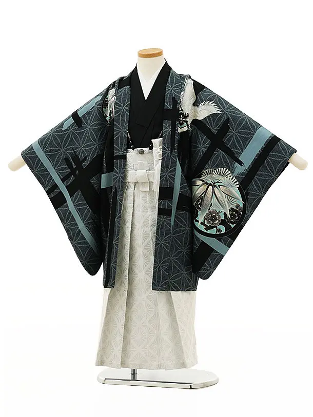 かんたん七五三(5歳男袴)X222JAPANSTYLEブルーグレー梅白鷹x白袴