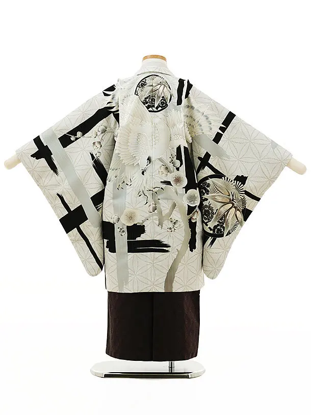かんたん七五三レンタル(5歳男袴)X223JAPANSTYLE白梅白鷹xこげ茶袴