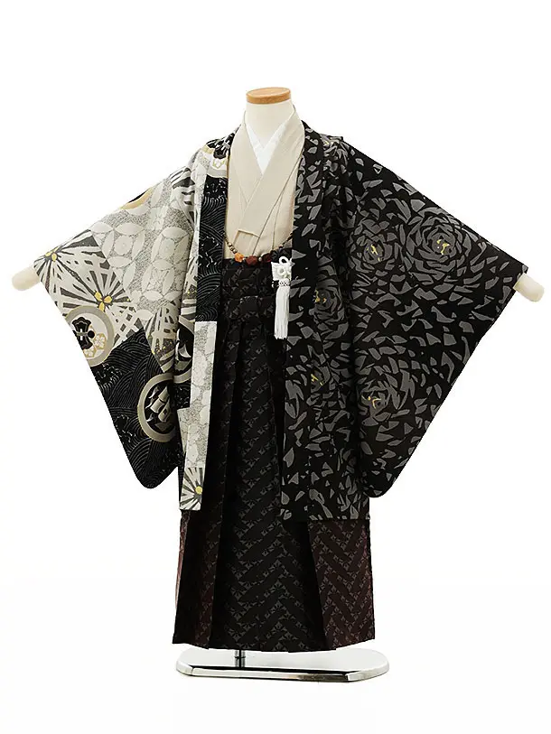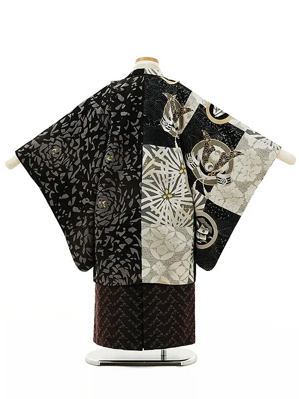 かんたん七五三レンタル(5歳男袴)X225UNSODO片身替わり黒x茶袴
