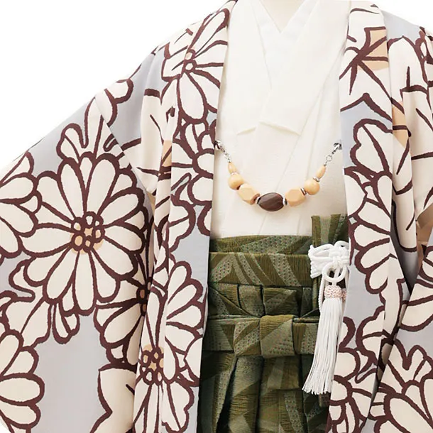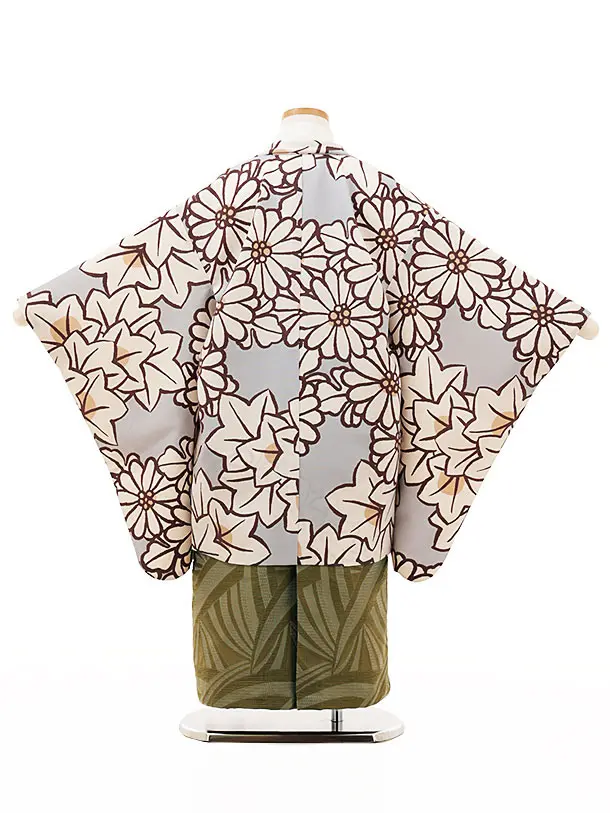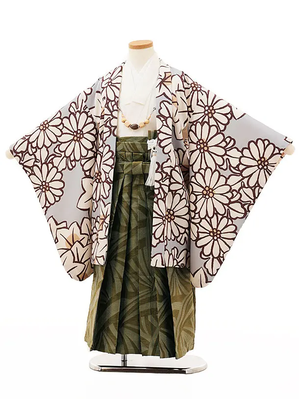 七五三レンタル(5歳男袴)X231花わらべブルーグレー花楓xカーキ
