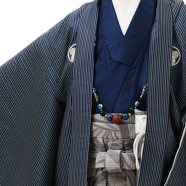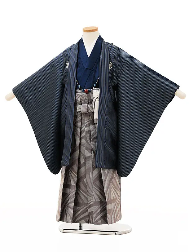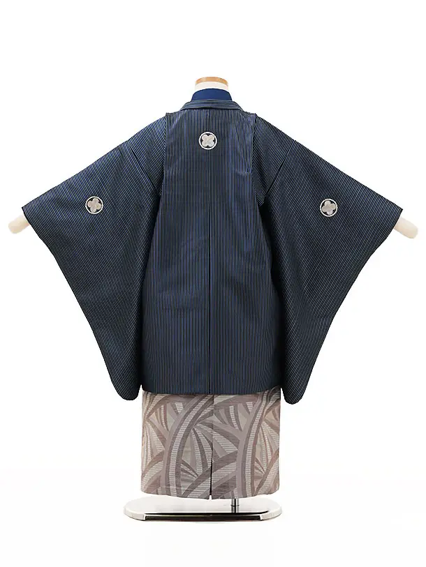 七五三レンタル(5歳男袴)X234花わらべ紺ストライプxグレーパープル
