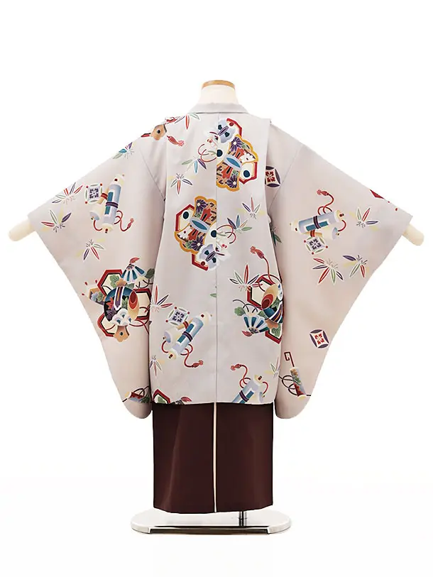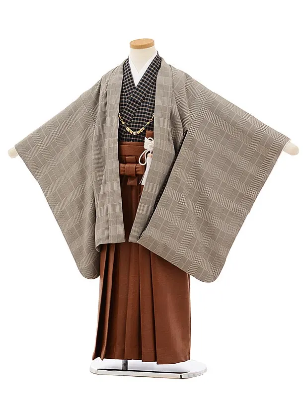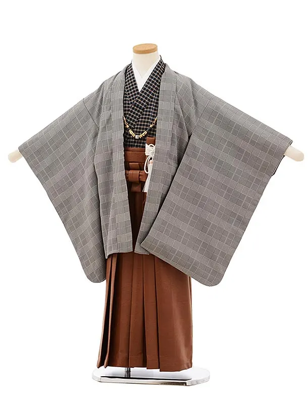 七五三レンタル(5歳男袴)X256グレー吉祥文様x茶