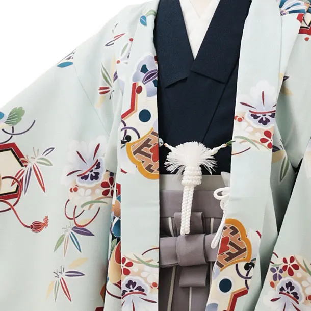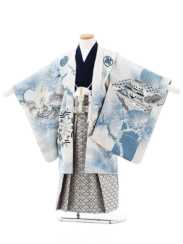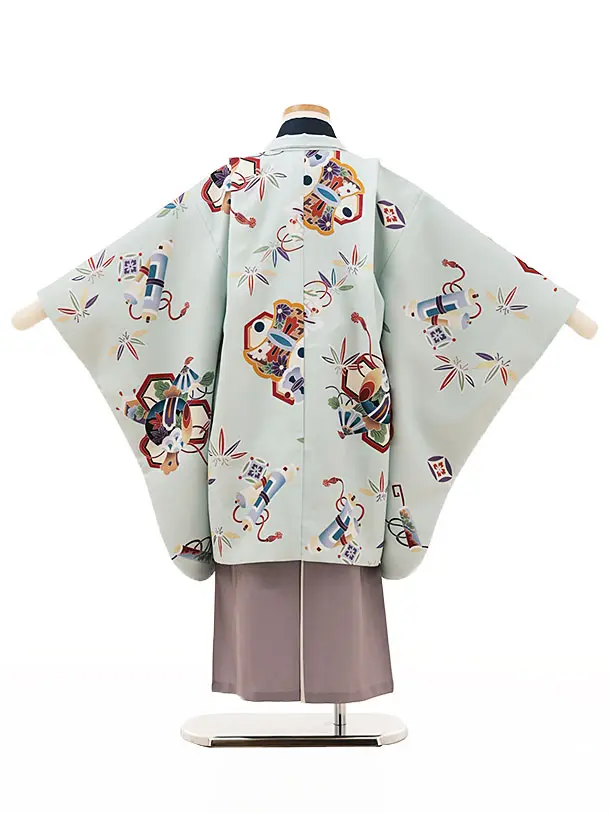 七五三レンタル(5歳男袴)X257ペールブルー吉祥文様xグレー