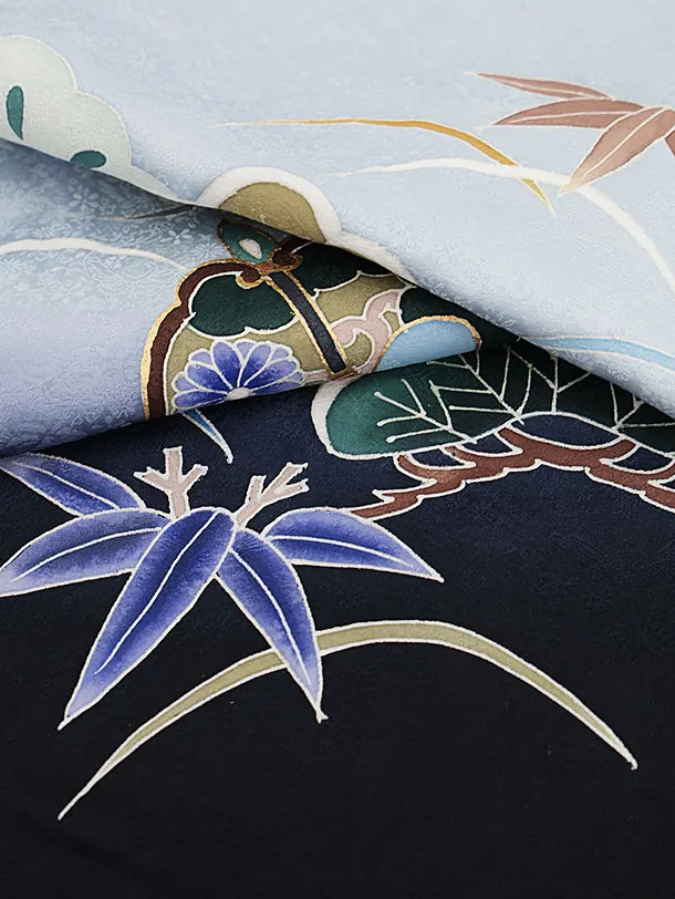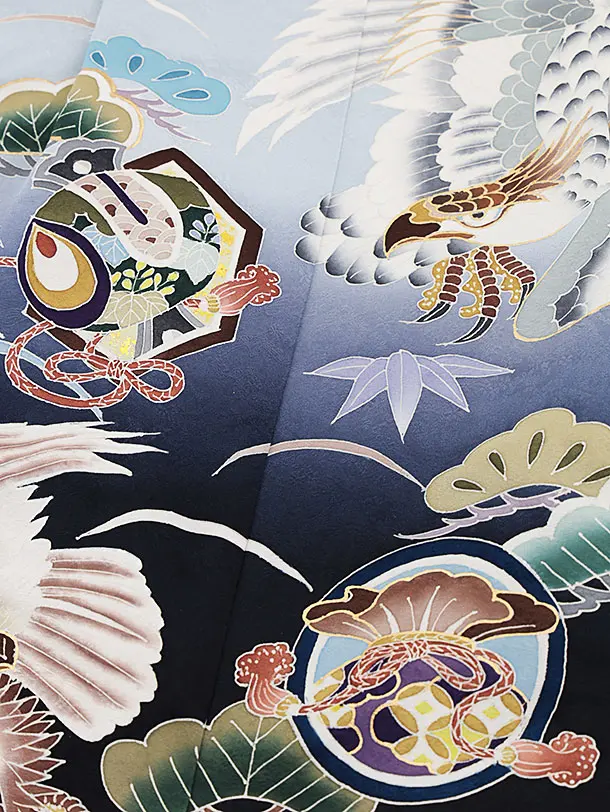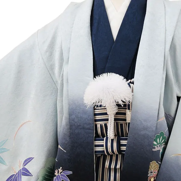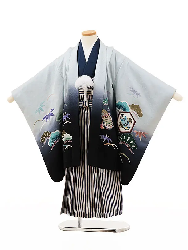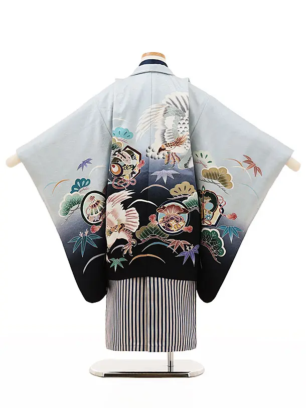七五三(5歳男袴)X260【高級正絹】水色ぼかし松鷹x紺縞