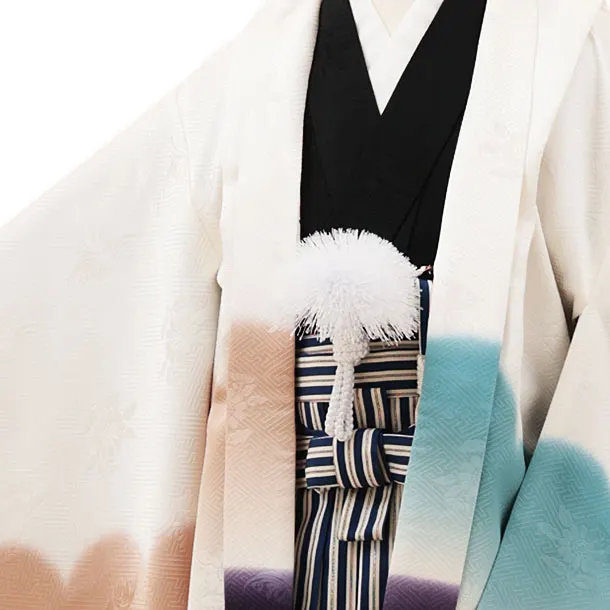 七五三(5歳男袴)X263【高級正絹】白地雲取りx紺縞