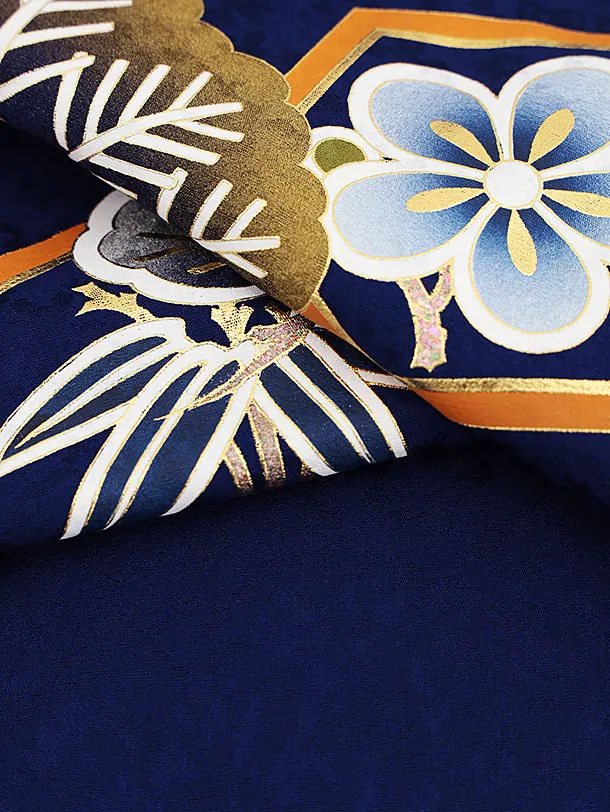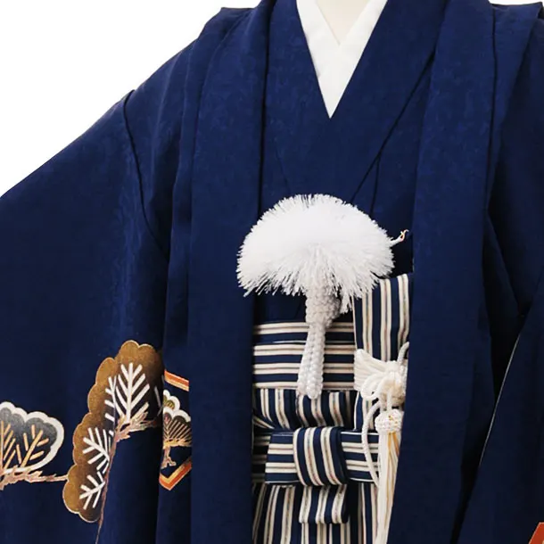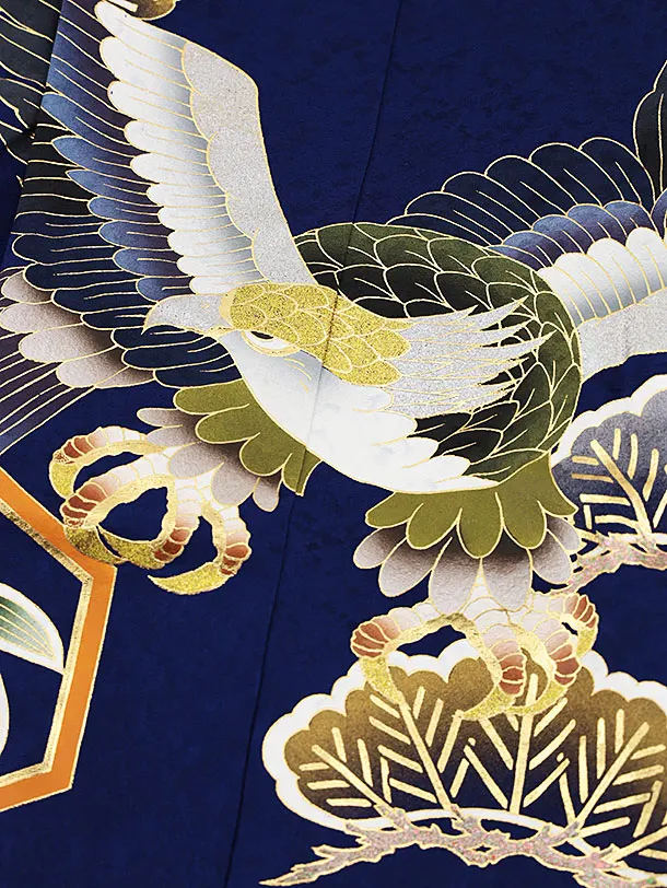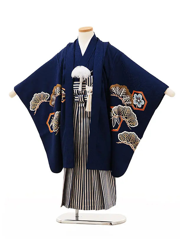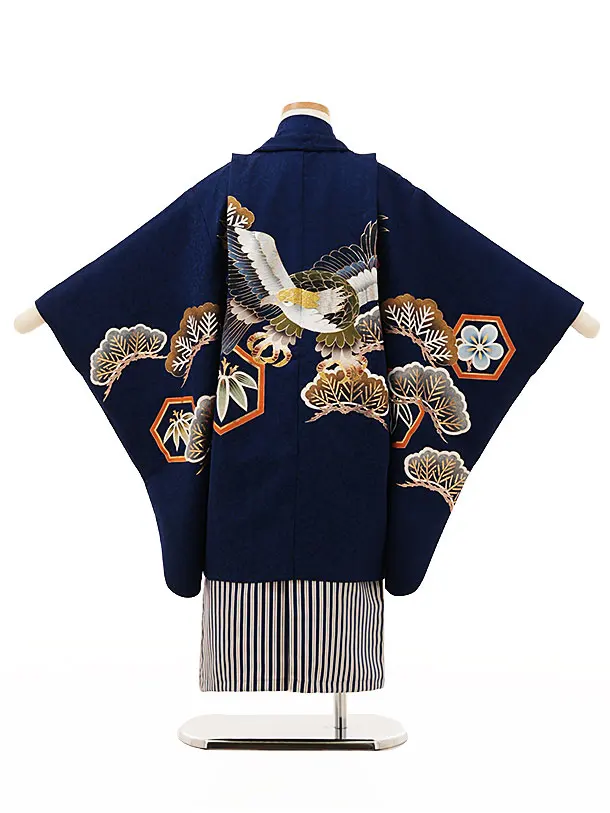 七五三(5歳男袴)X264【高級正絹】紺地松に鷹x紺縞