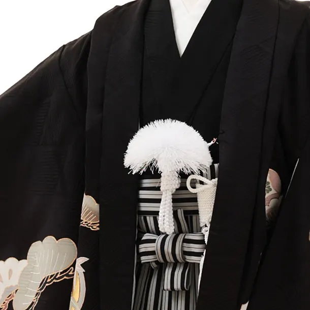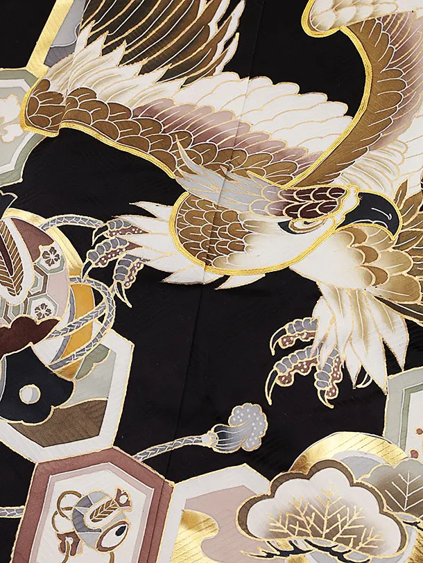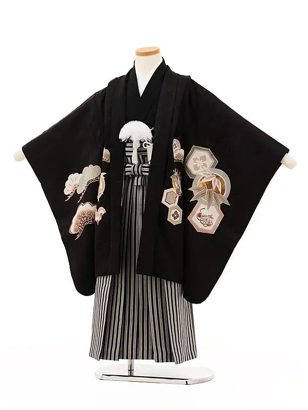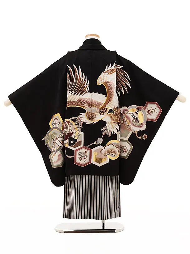 七五三(5歳男袴)X270【高級正絹】黒地紋に鷹x黒縞