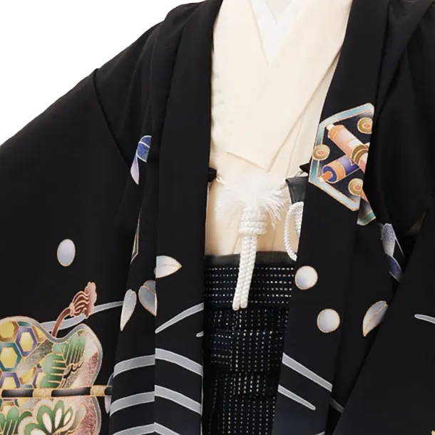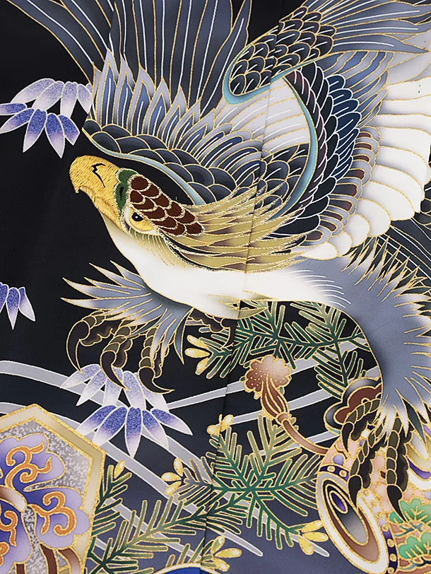 かんたん七五三レンタル(5歳男袴)X288黒地吉祥文様鷹x紺
