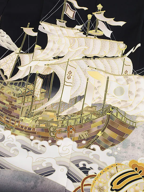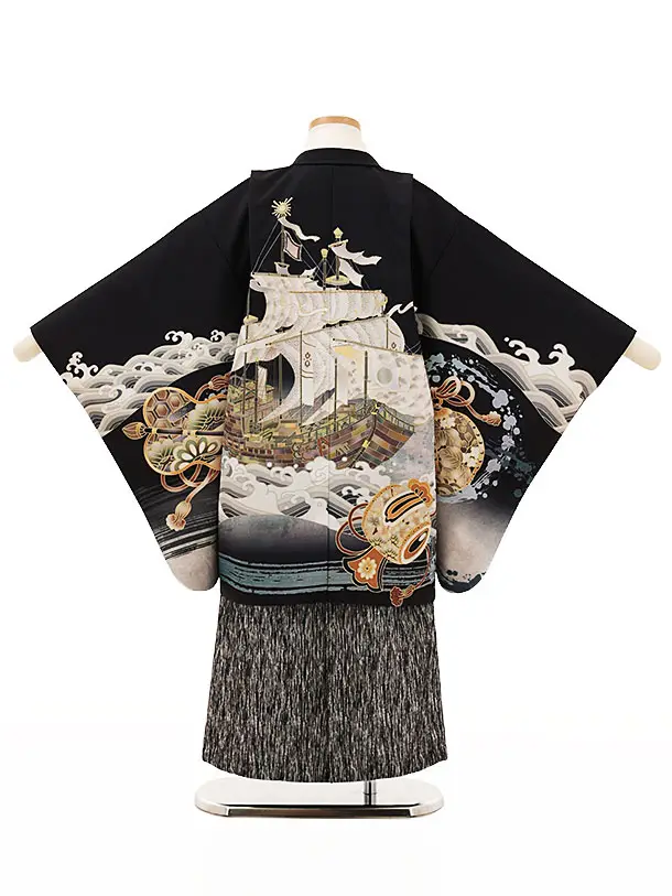 かんたん七五三レンタル(5歳男袴)X292黒地帆船x黒白
