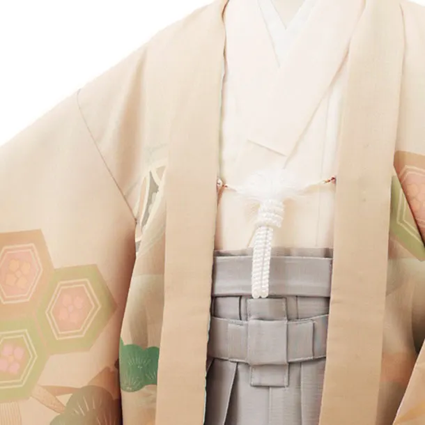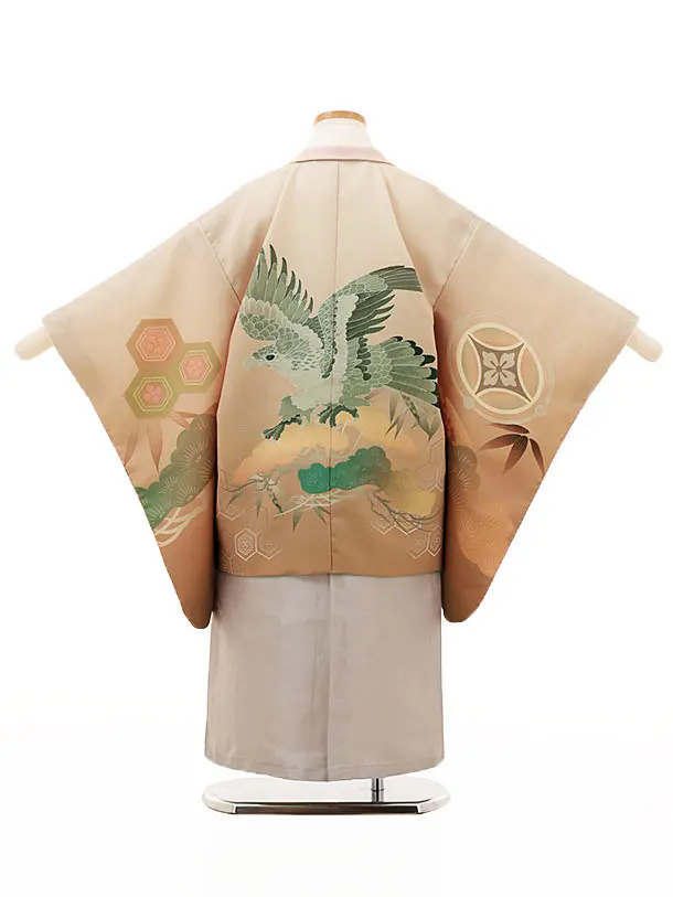 かんたん七五三レンタル(5歳男袴)X293ピンクベージュ松鷹xグレー