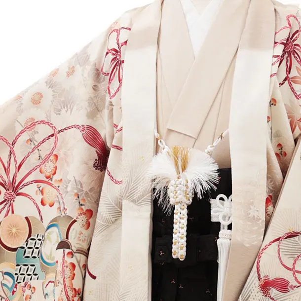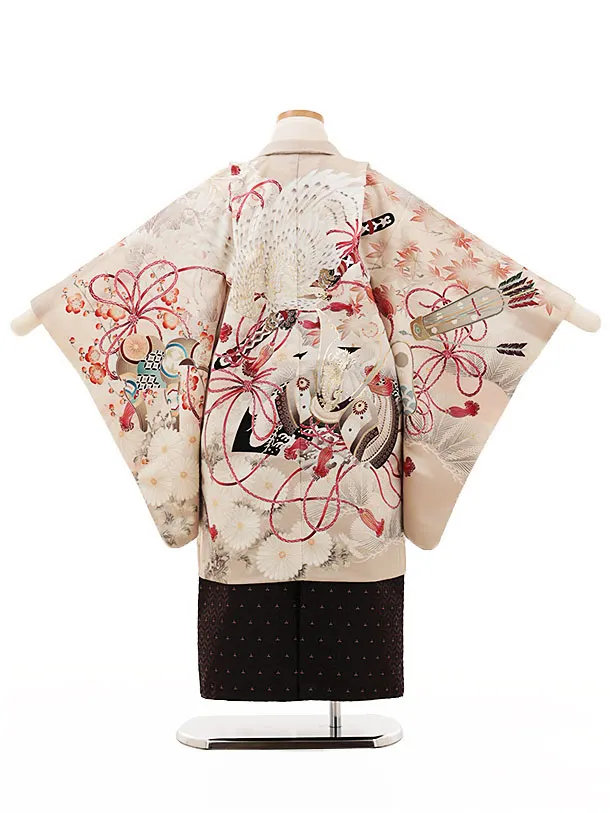 かんたん七五三(5歳男袴)X297華徒然ベージュ鷹兜x黒