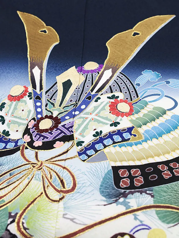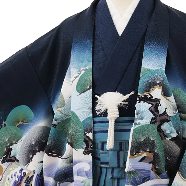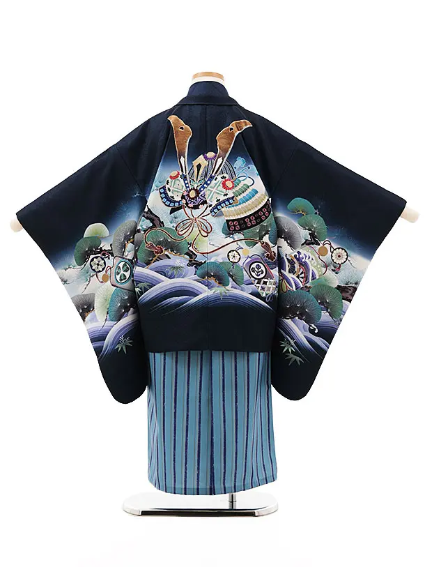 かんたん七五三(5歳男袴)X298 紺地松波兜×ブルーストライプ