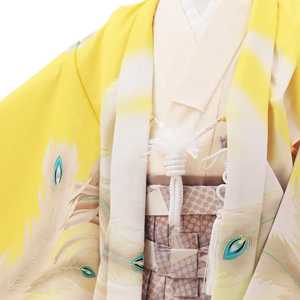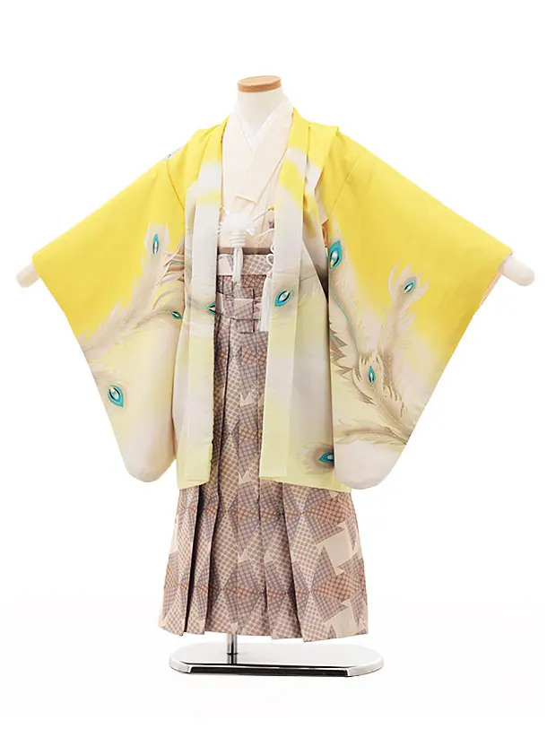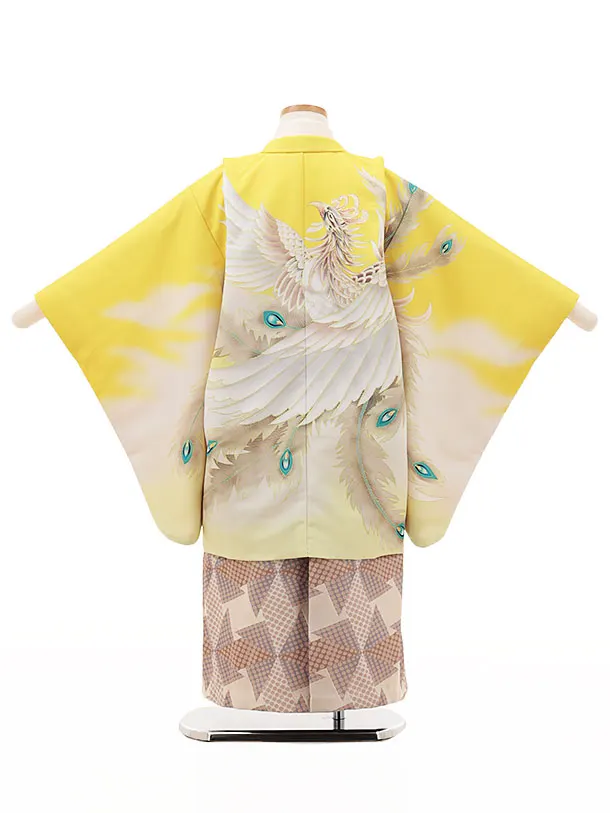 かんたん七五三(5歳男袴)X305 イエロー鳳凰×ベージュ