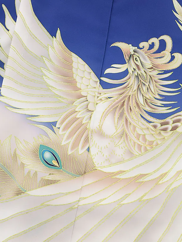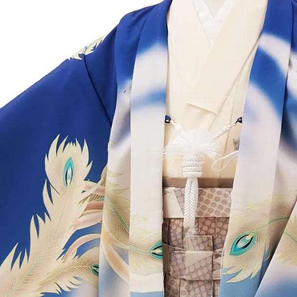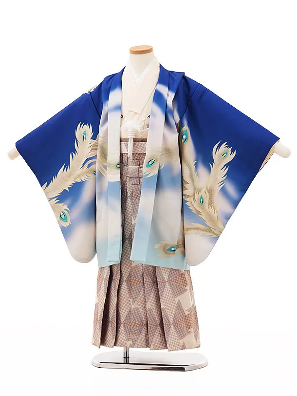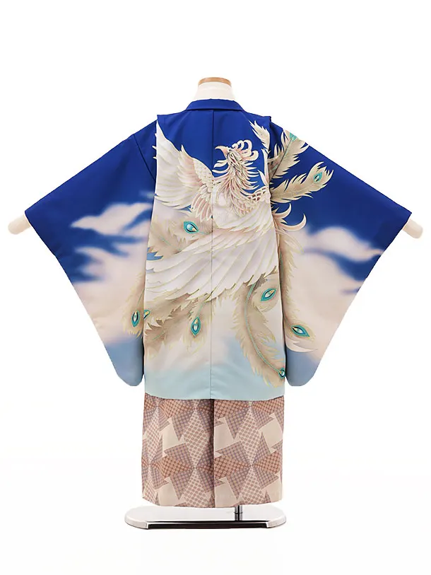 かんたん七五三(5歳男袴)X306 ブルー鳳凰×ベージュ