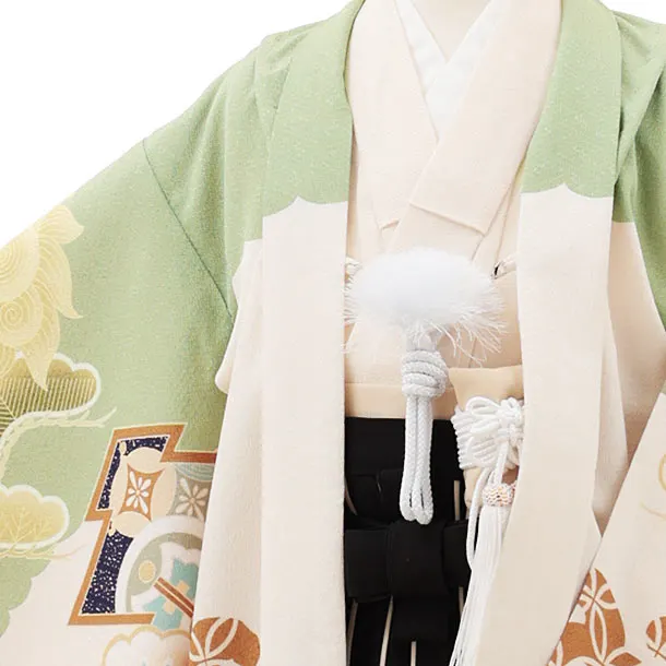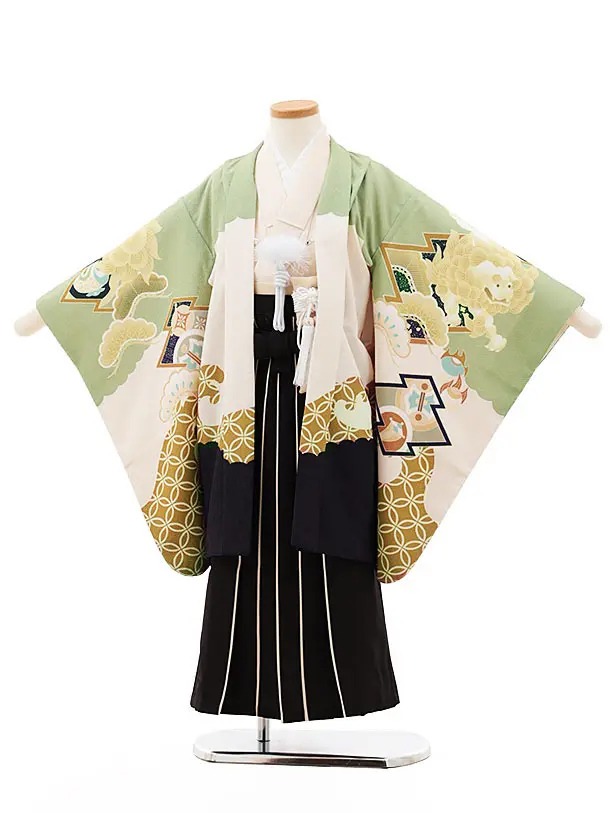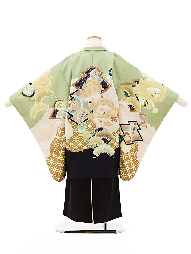 七五三(5歳男袴)X310 ヒワ色トラッド唐獅子×黒