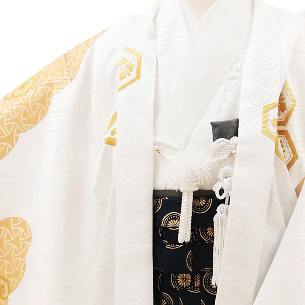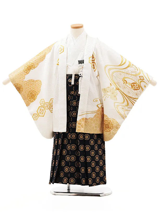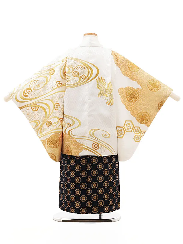 かんたん七五三(5歳男袴)X314 白地流水に鳥×紺