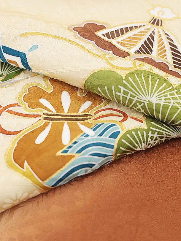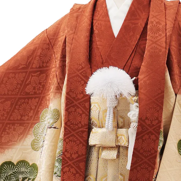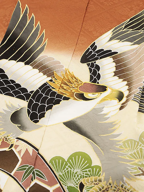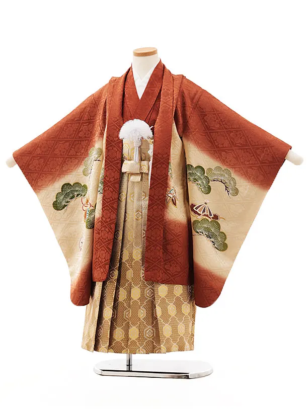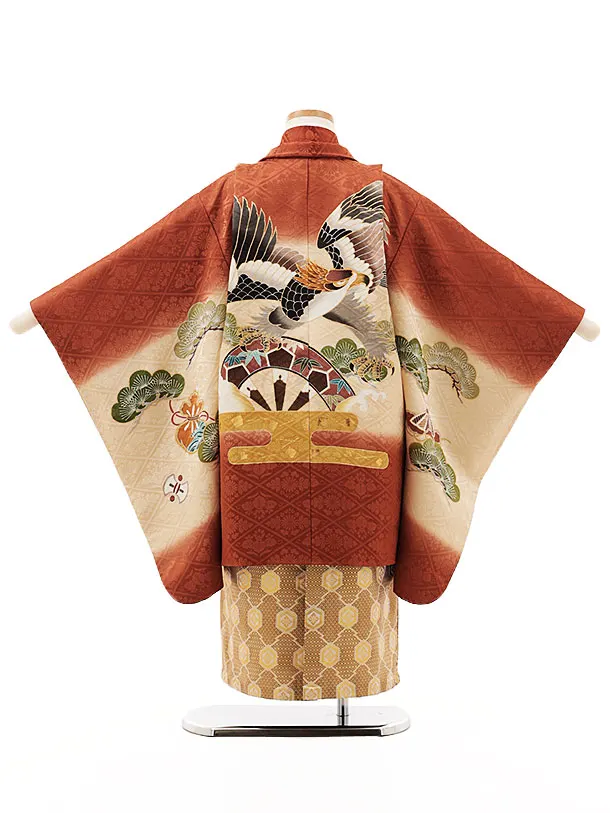 七五三(5歳男袴)X344【正絹】唐茶色鷹に吉祥文様×金茶ぼかし