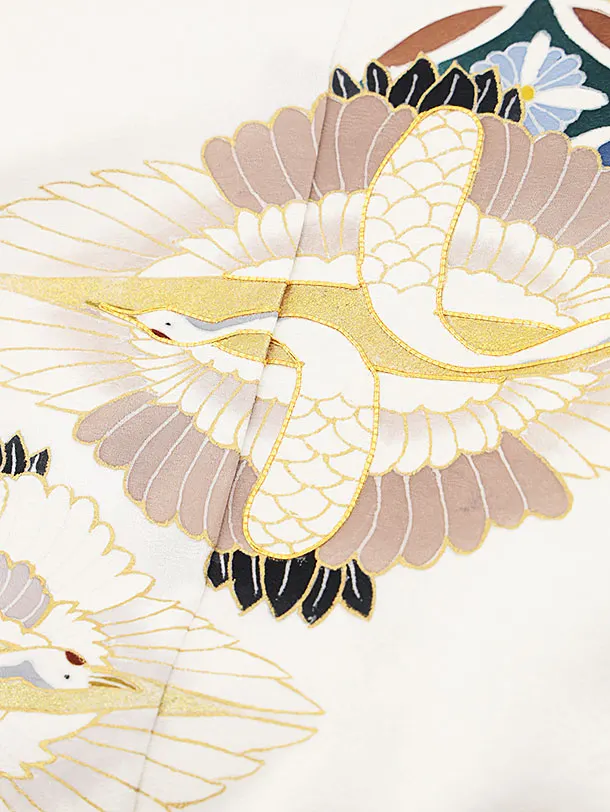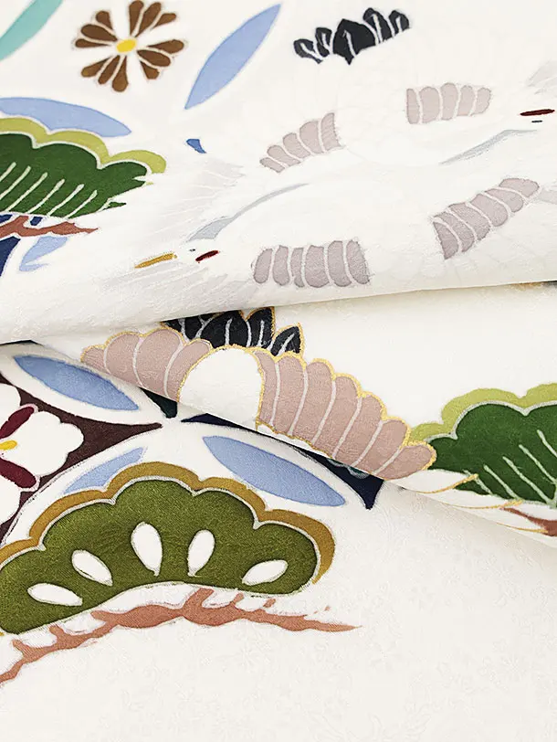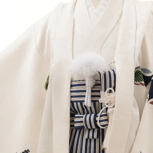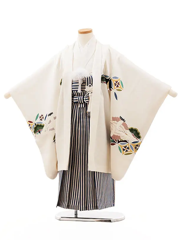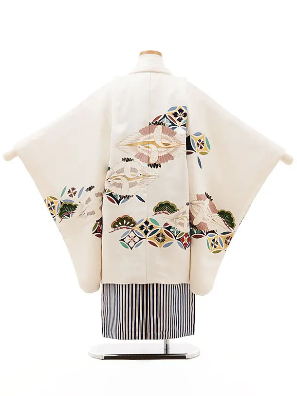 七五三(5歳男袴)X345【高級正絹】白地七宝に対い鶴×紺縞