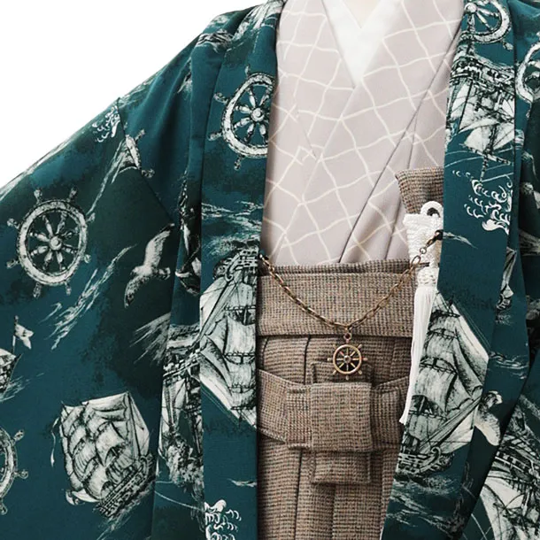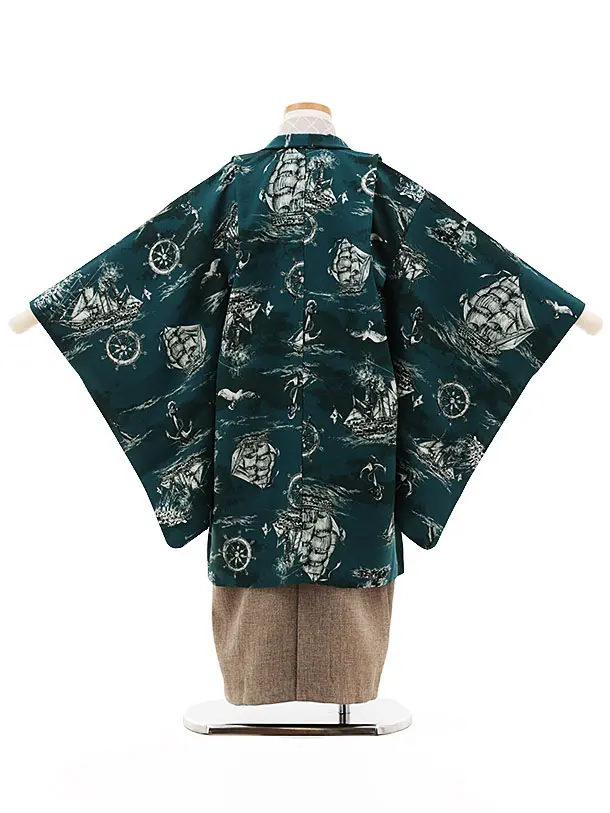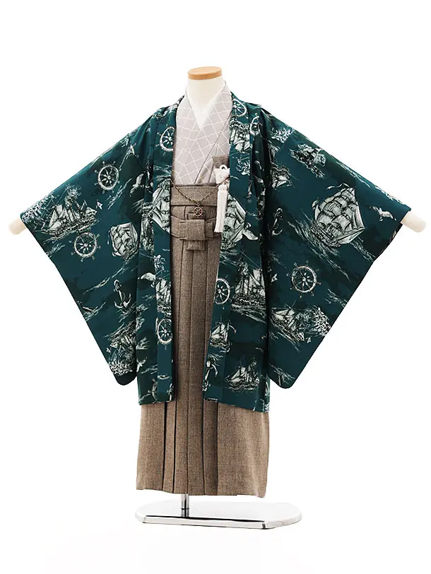 かんたん七五三(5歳男袴)X358 和風館 グリーン大海原×ベージュ