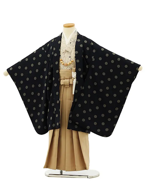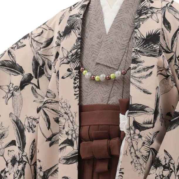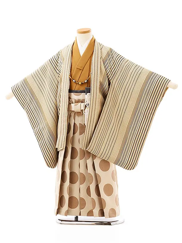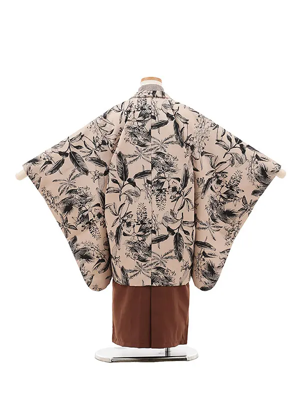 七五三レンタル(5歳男袴)X366 ベージュボタニカル×ブラウン袴