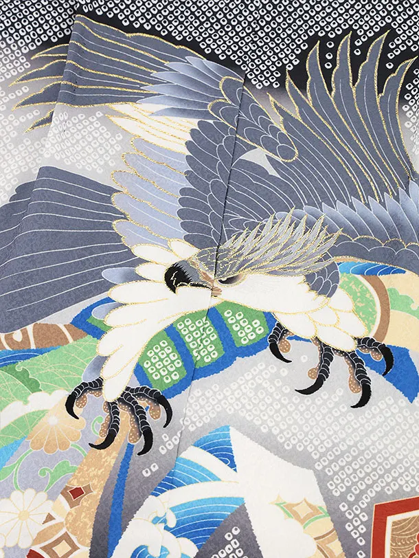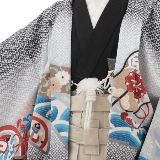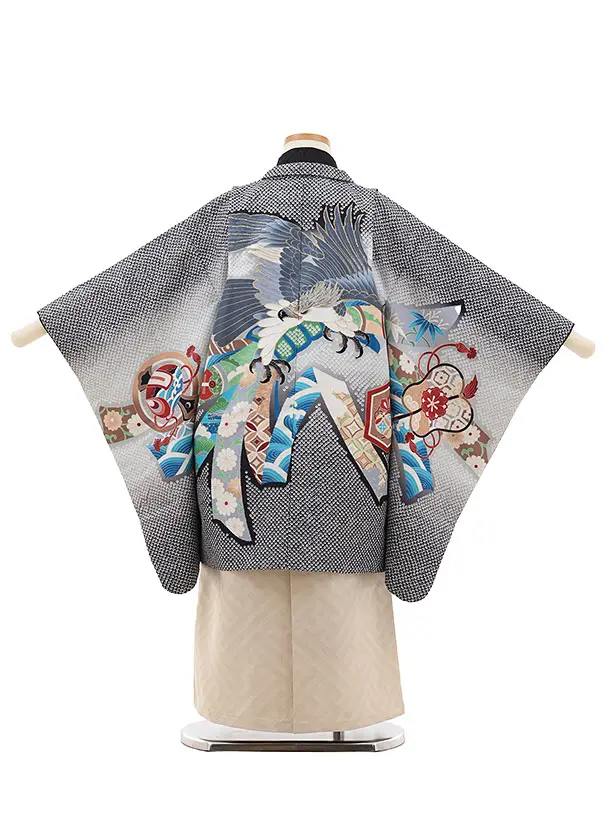 かんたん七五三(5歳男袴)X381 黒地疋田柄束ね熨斗鷹×ベージュ