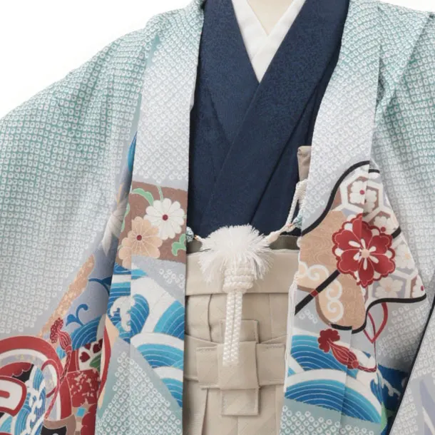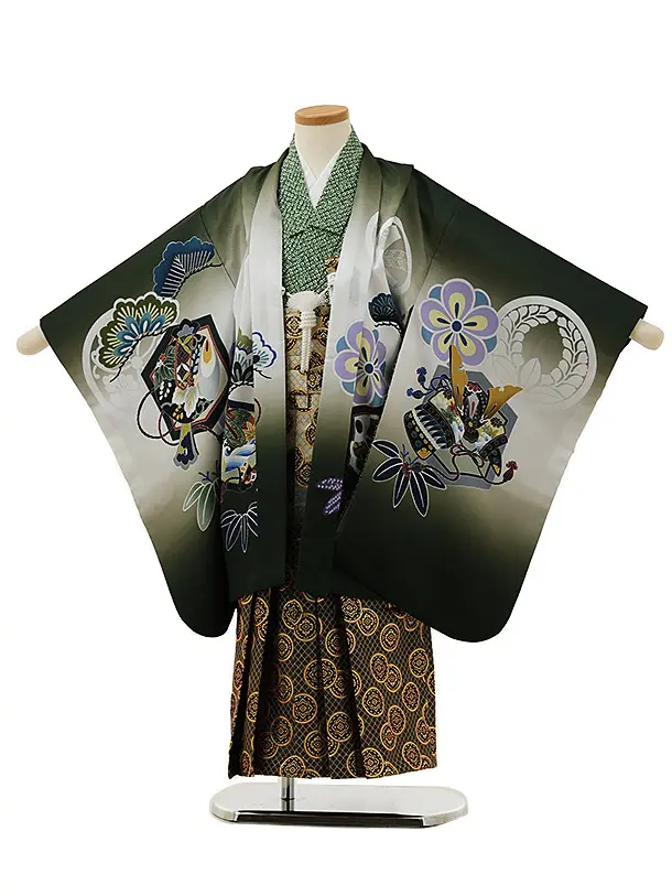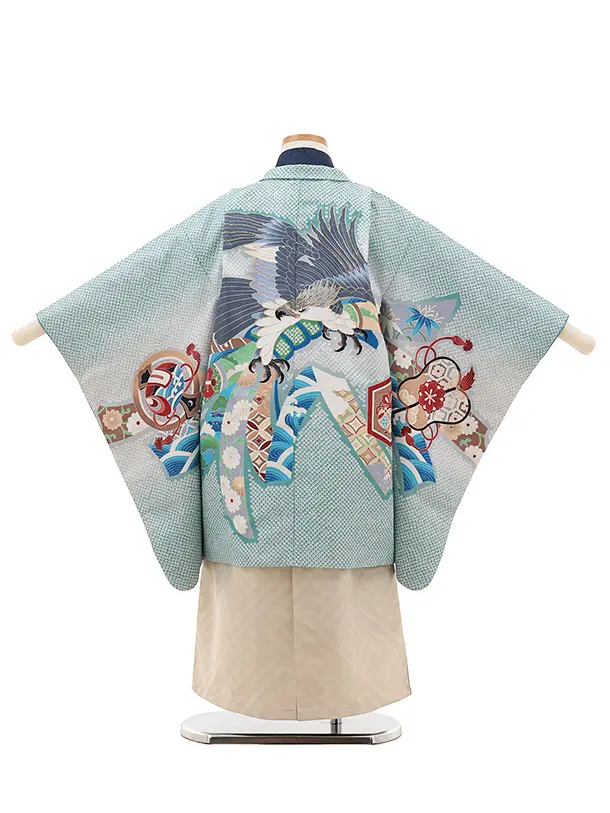 かんたん七五三(5歳男袴)X382 グリーン疋田柄束ね熨斗鷹×ベージュ