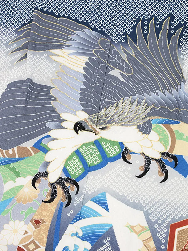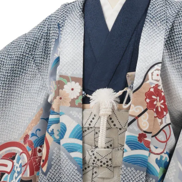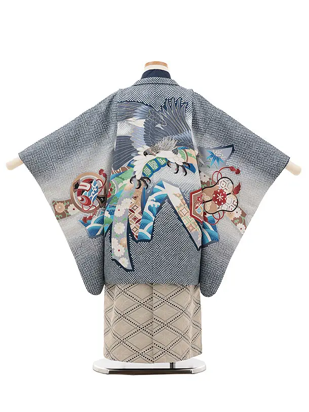 かんたん七五三(5歳男袴)X387 紺疋田柄束ね熨斗鷹×アイボリー