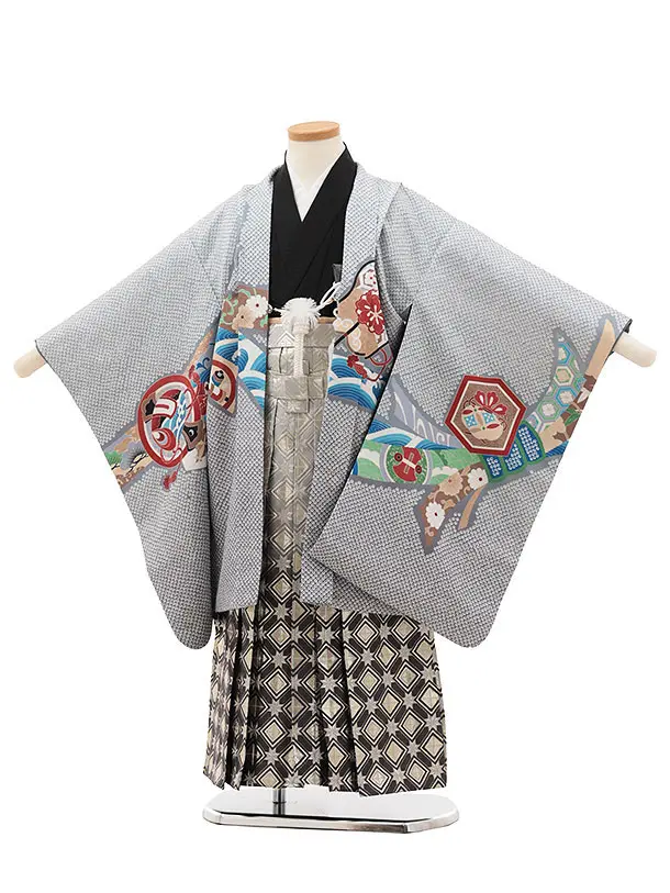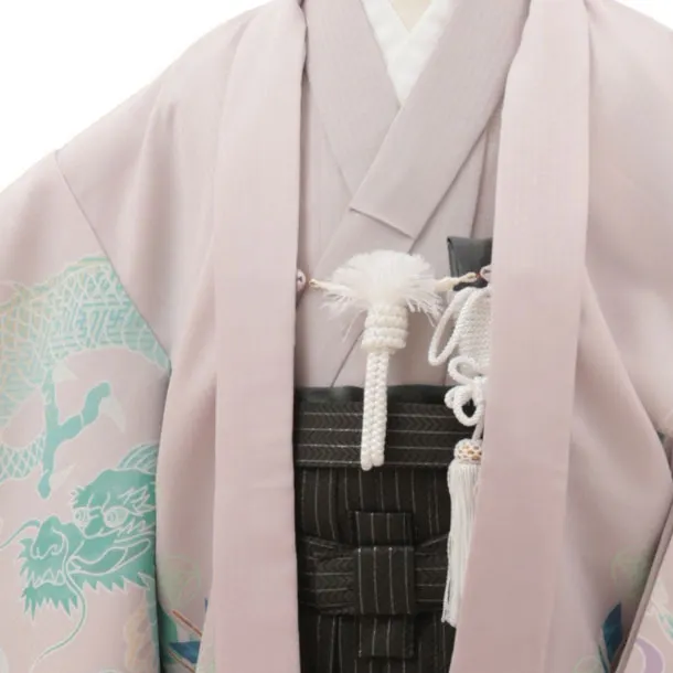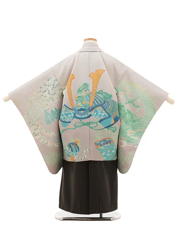 かんたん七五三(5歳男袴)X396 パープルグレー龍兜×モスグリーン