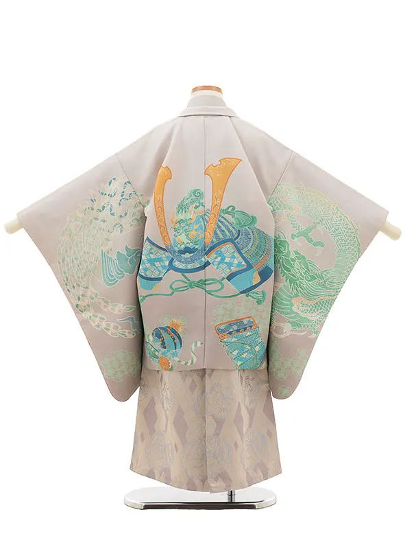 かんたん七五三(5歳男袴)X397 パープルグレー龍兜×アイボリーパープル