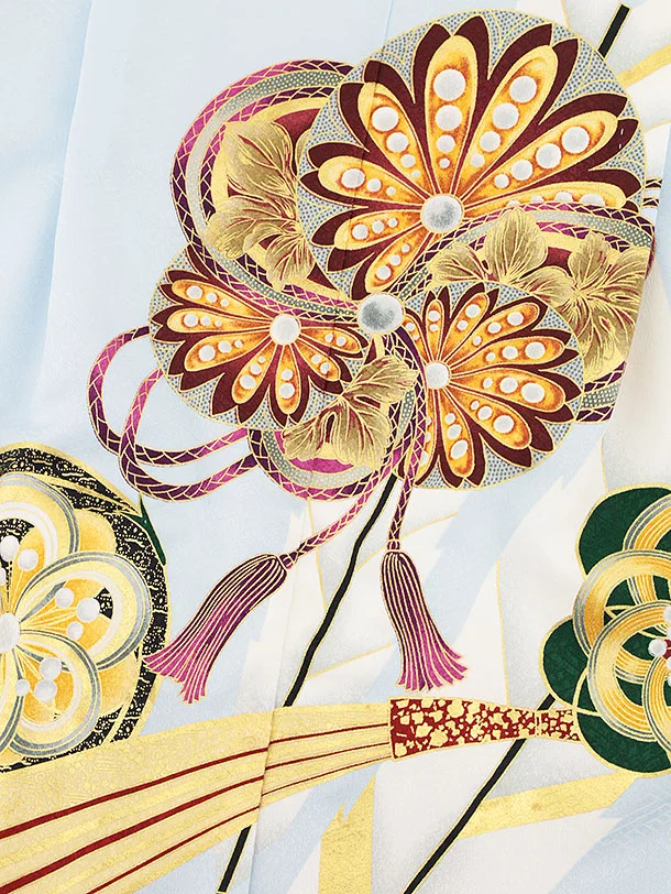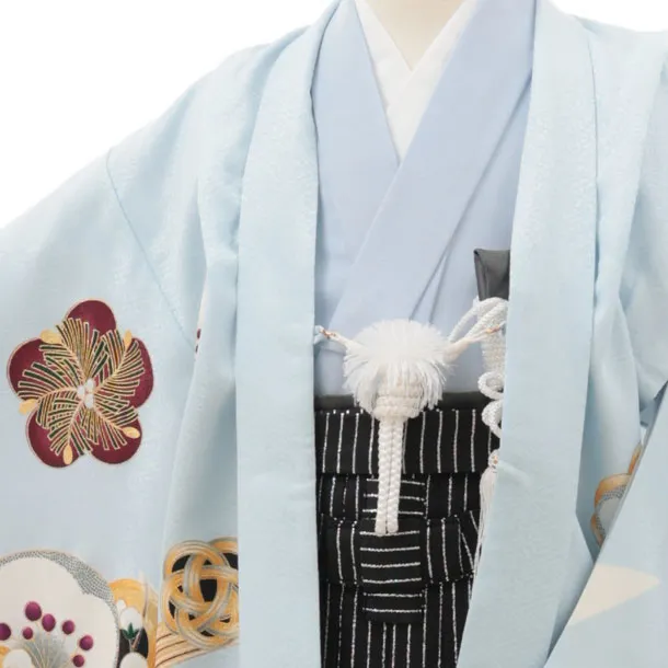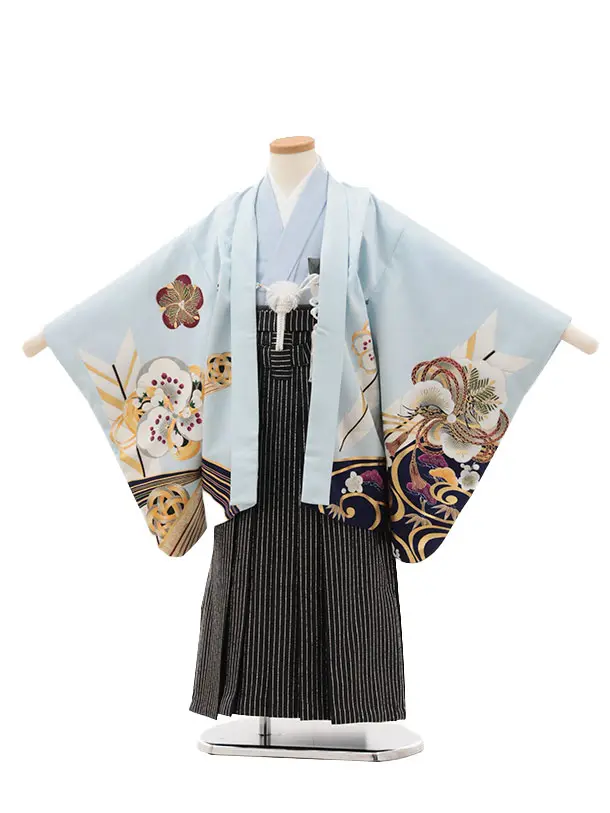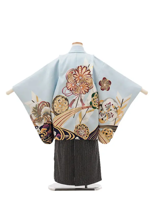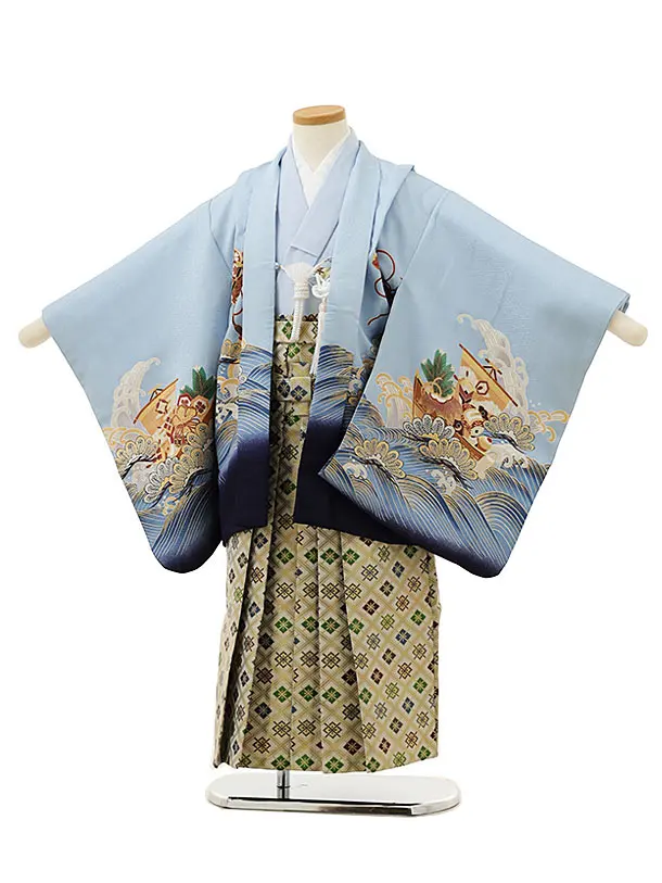 かんたん七五三(5歳男袴)X407 水色波に吉祥文様×黒シルバー