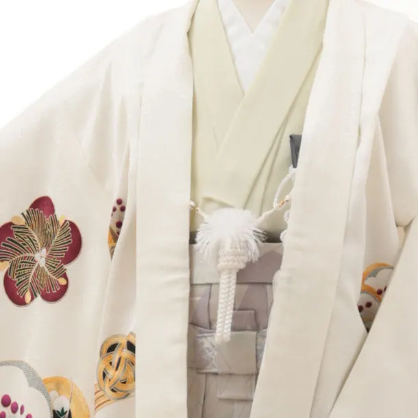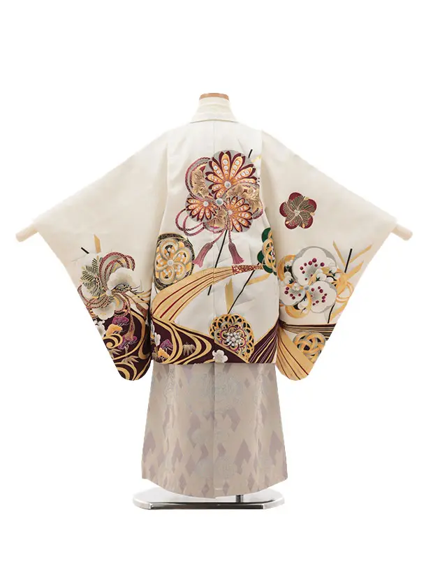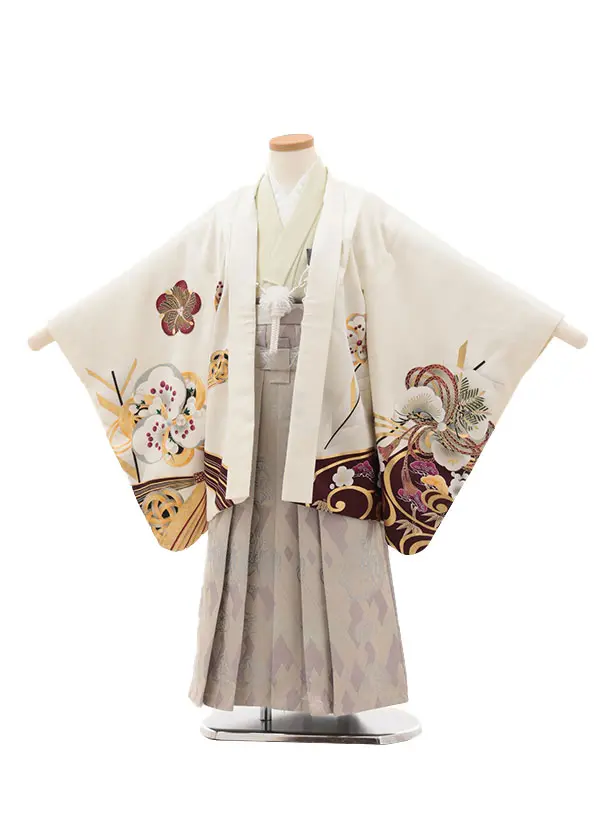かんたん七五三(5歳男袴)X408 オフホワイト波に吉祥文様×アイボリーパープル