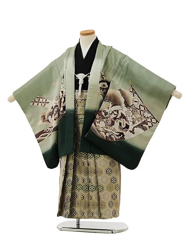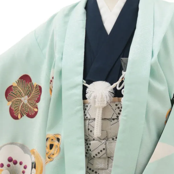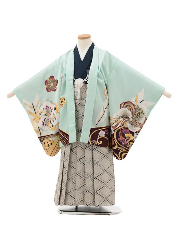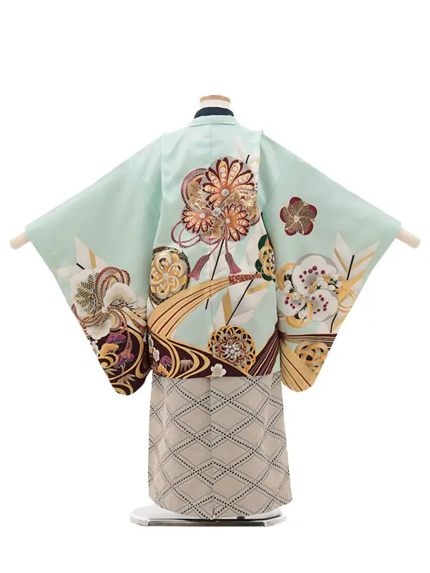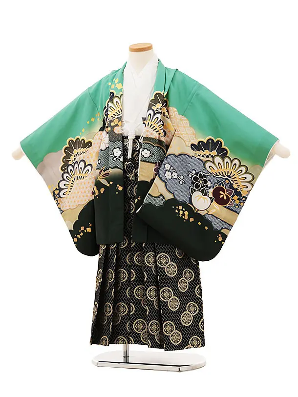 かんたん七五三(5歳男袴)X411 ミントグリーン波に吉祥文様×アイボリー