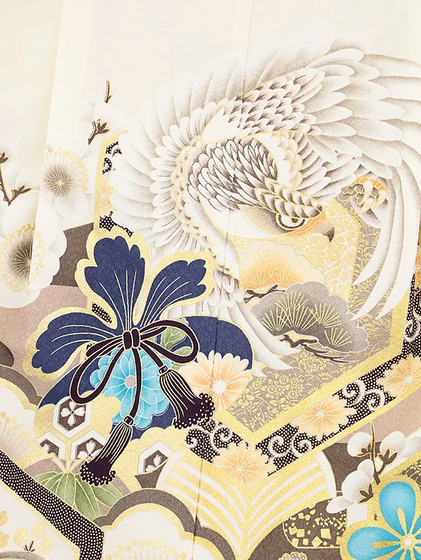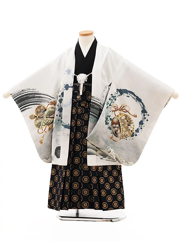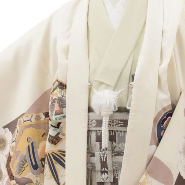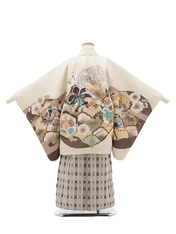 かんたん七五三(5歳男袴)X418 オフホワイト松竹梅白鷹×ベージュ