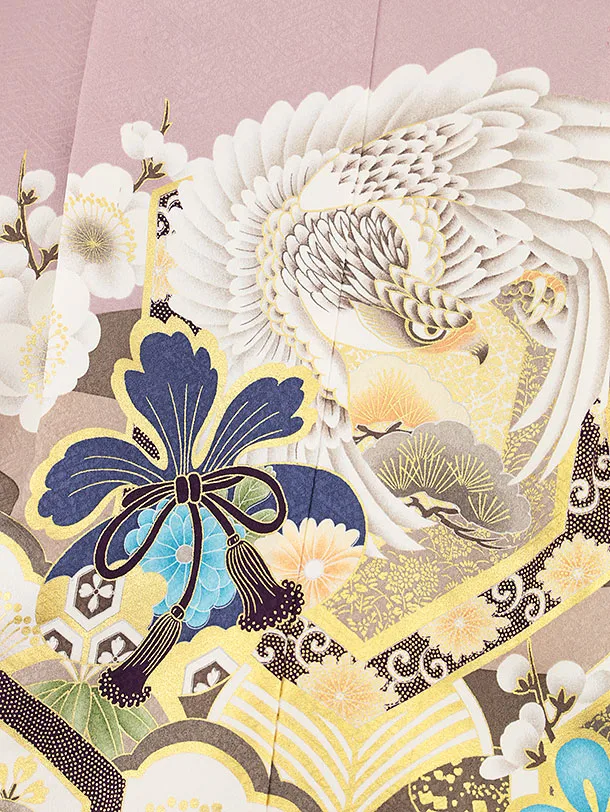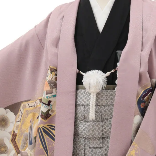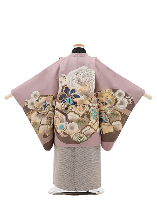 かんたん七五三(5歳男袴)X420 パープル松竹梅白鷹×パープルグレー