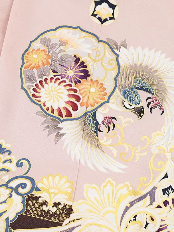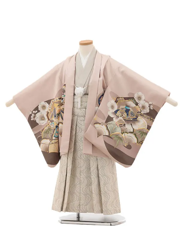 かんたん七五三(5歳男袴)X428 ピンク鷹に唐花文×グレー白