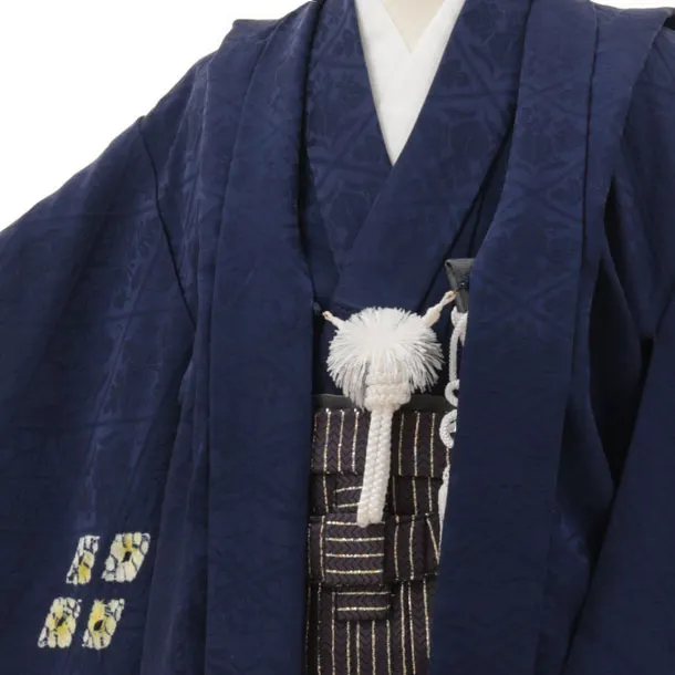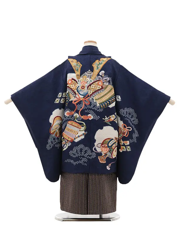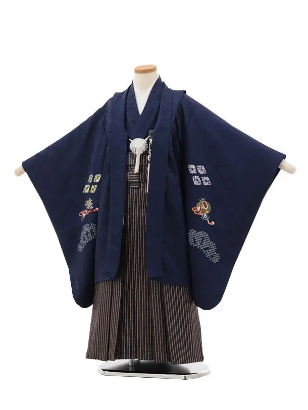 かんたん七五三(5歳男袴)X433【正絹】 紺地刺繍兜×パープルブラウン