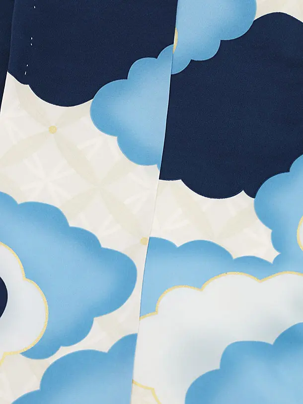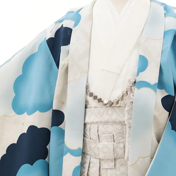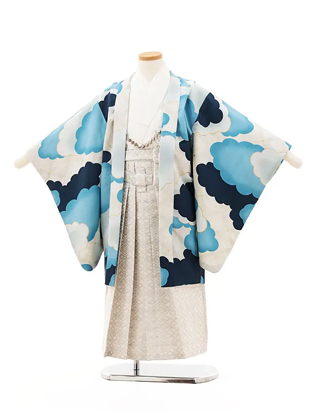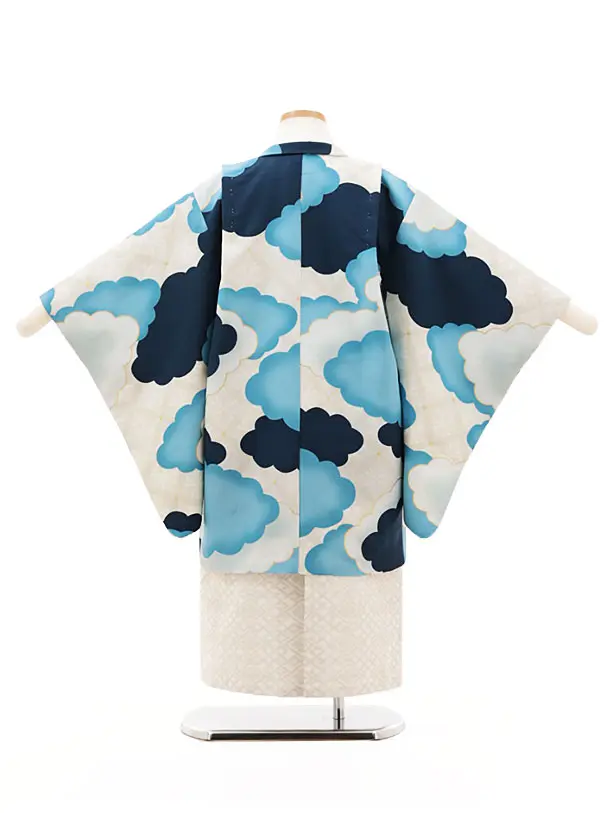 かんたん(5歳男袴)X463 ぷちぷりベージュ地 ブルー雲取り×オフホワイト