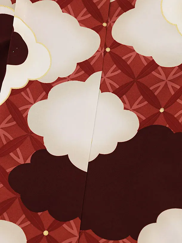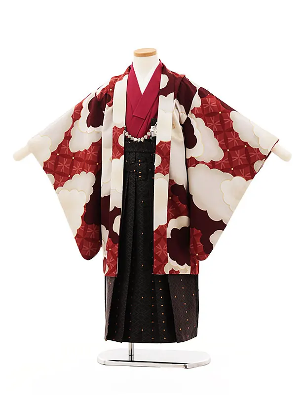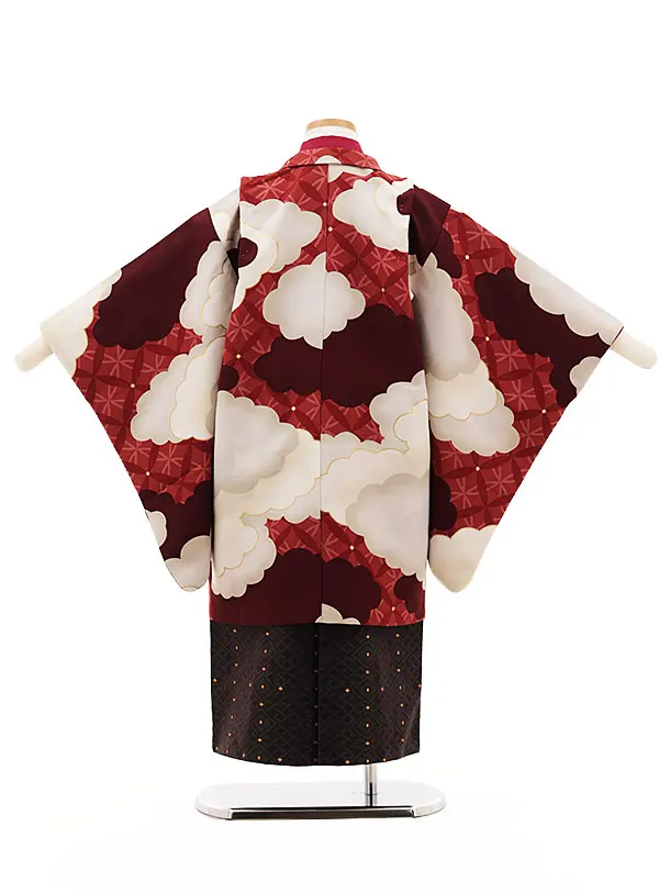 かんたん(5歳男袴)X464 ぷちぷり赤茶地 ベージュ雲取り×こげ茶