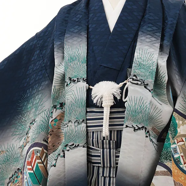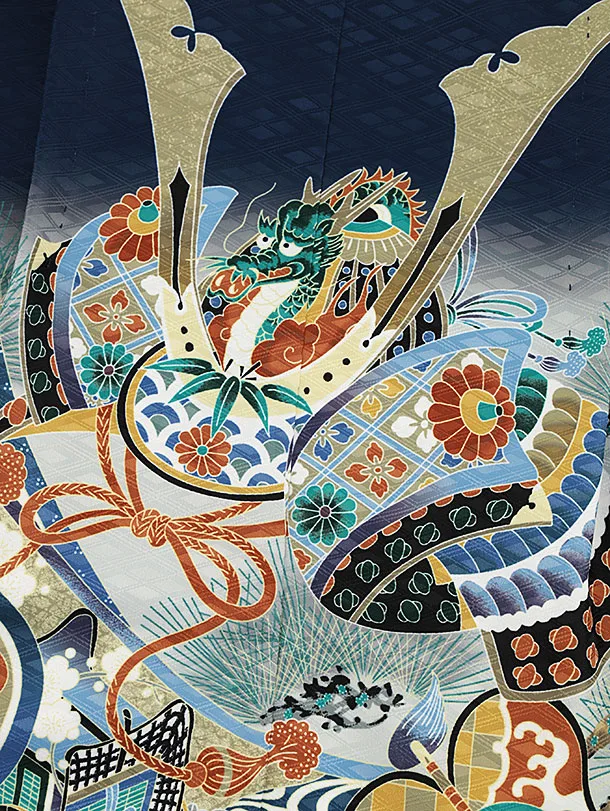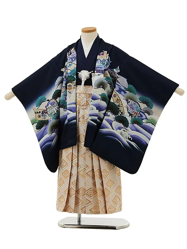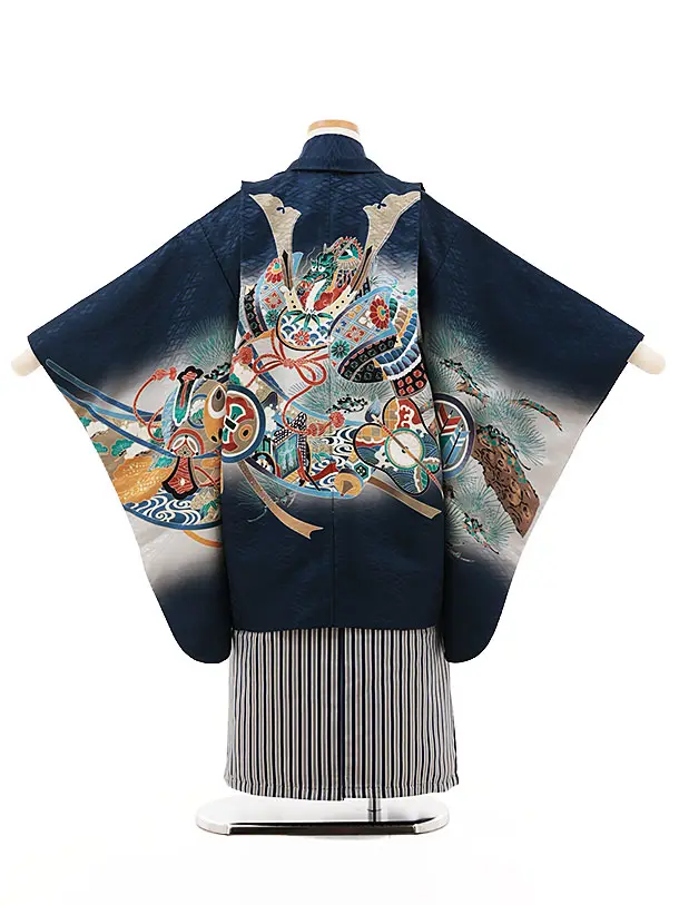 かんたん七五三(5歳男袴)X487 紺地 松兜×紺縞