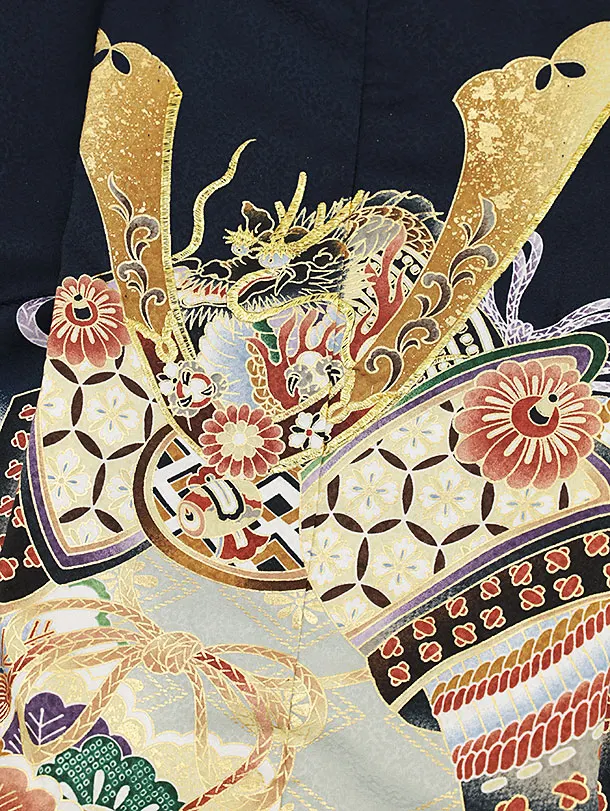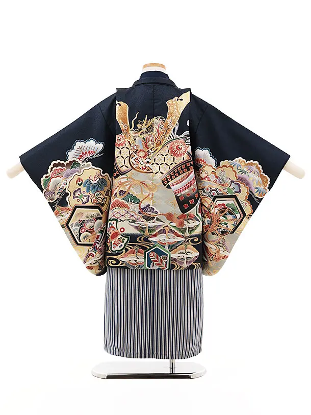 七五三レンタル(5歳男袴)X489 紺地 吉祥文様兜×紺縞