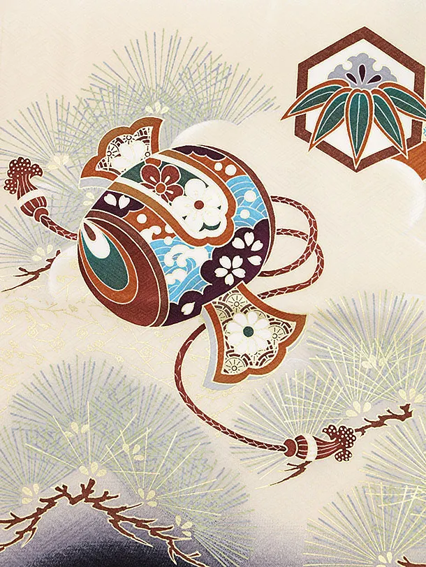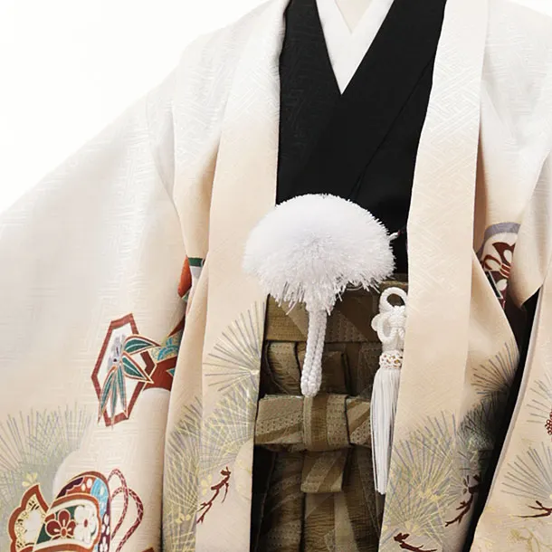 七五三(5歳男袴)X492【正絹】白地 吉祥文様鷹×オリーブグリーン