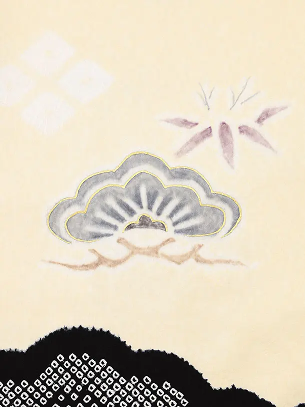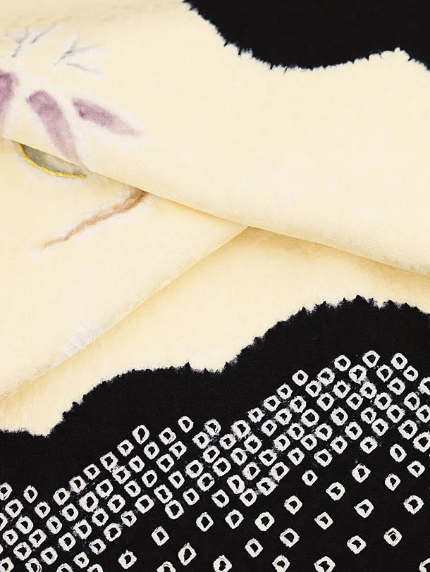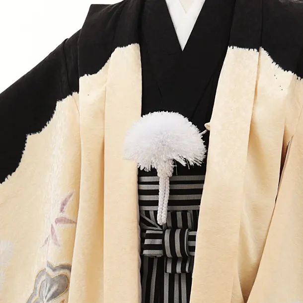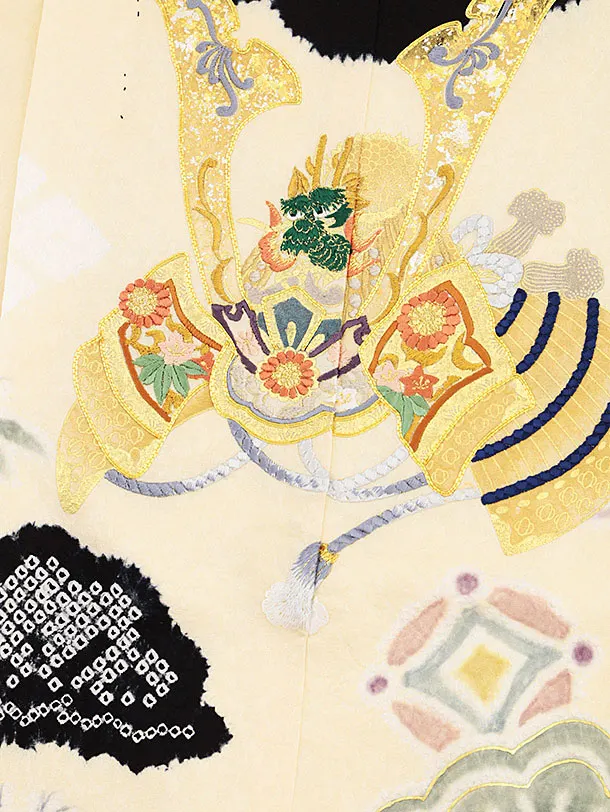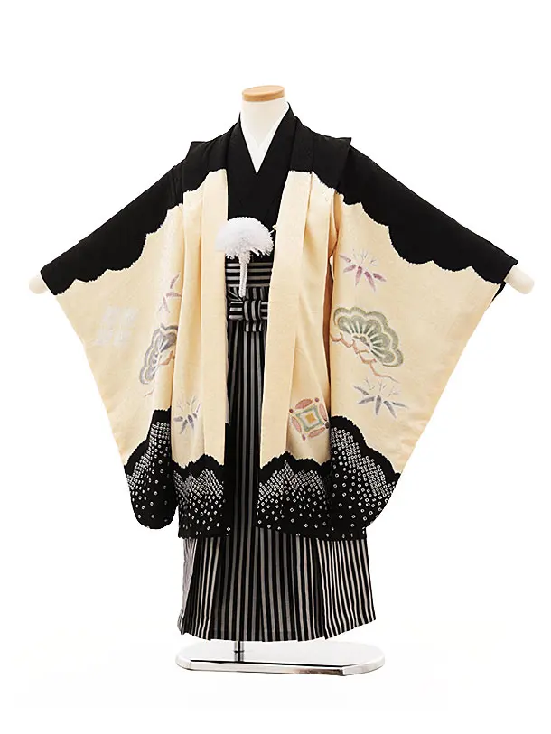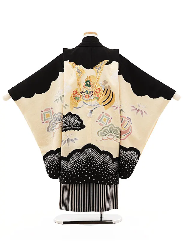 七五三(5歳男袴)X500【高級正絹】黒薄黄色 吉祥文様兜×黒縞