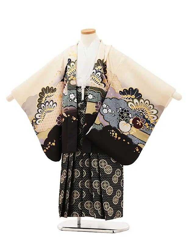 かんたん七五三(5歳男袴)X504 黒紋付×アイボリー